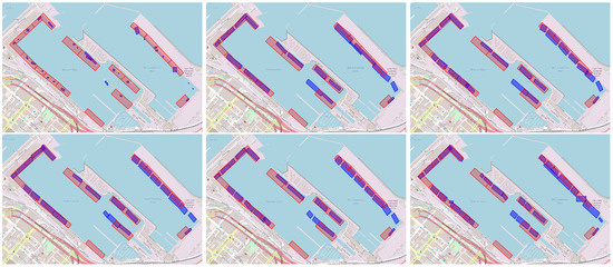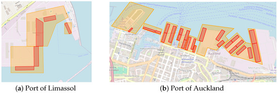 https://shipnext.com/ accessed on 4 November 2025). The port berth areas are represented as rotated rectangles, as illustrated in