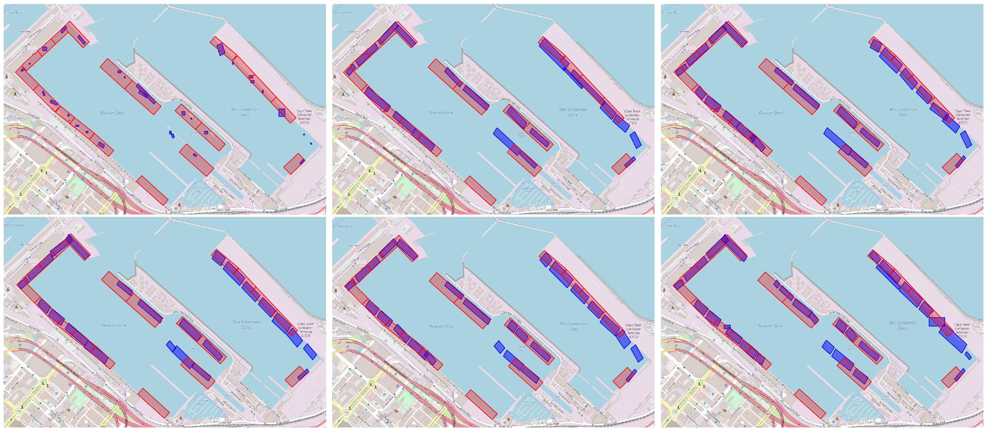 For qualitative model evaluation, rather than training, we collected port berth boundary boxes for the ports of interest. In particular, berth, terminal, and port area labels were obtained from the ShipNext website (
