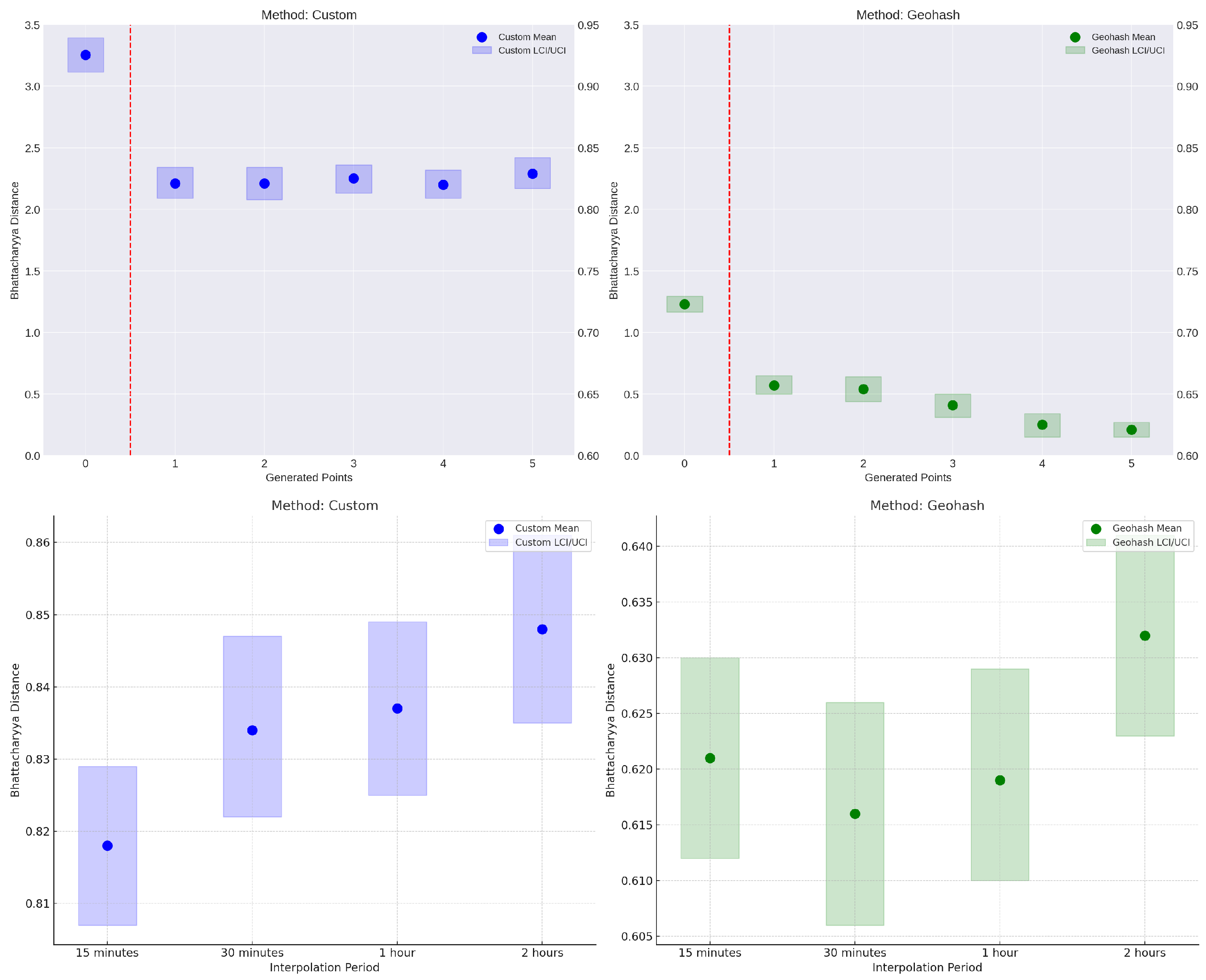 Intuitively, a lower BD indicates that the two GMMs assign similar probabilities to the same areas within the port, suggesting that our model consistently identifies similar berth structures across different data splits. For the Steenari et al. method [