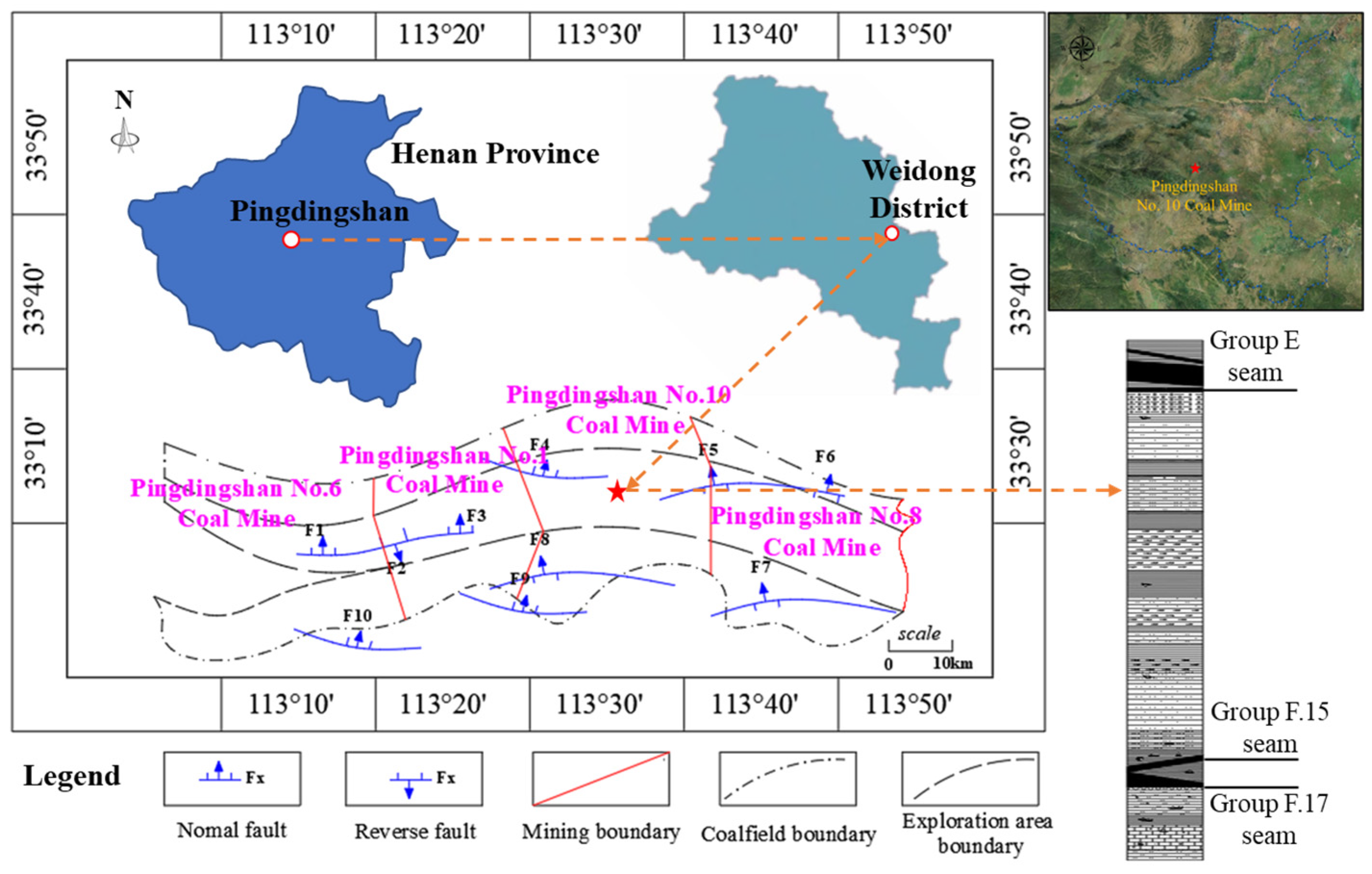 - Cheng, J.Y.; Wang, P.; Nan, S.H.; Qin, S. Rapidly locating a water-inrush collapse column in a seam floor: A case study. Mine Water Environ. 2021, 40, 389–397. [Google Scholar] [CrossRef]