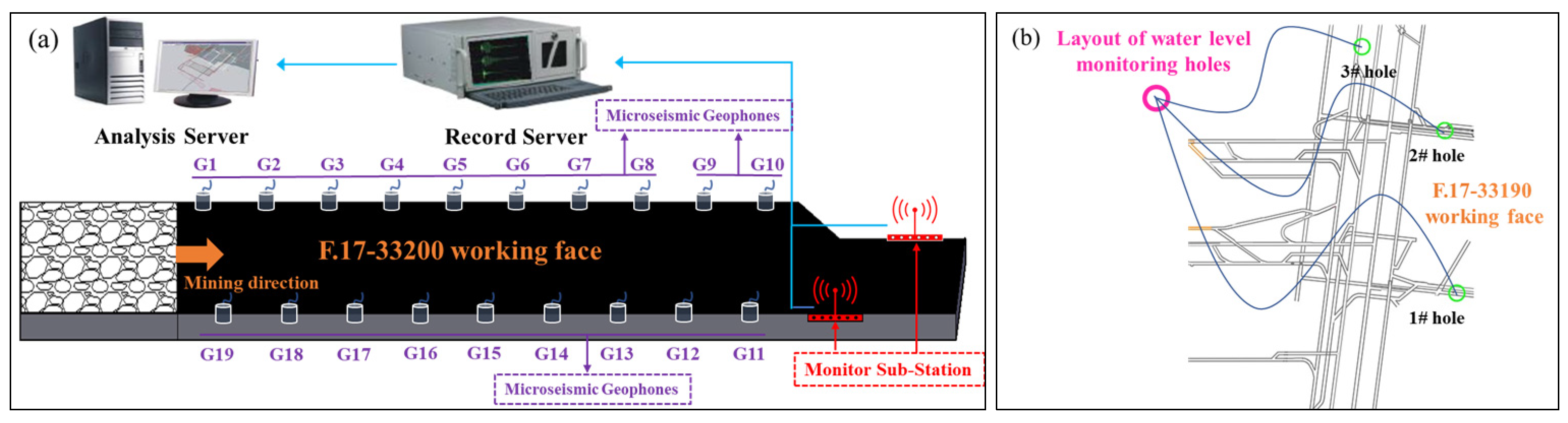 3.2. Working Face Overview and Monitoring System Layout