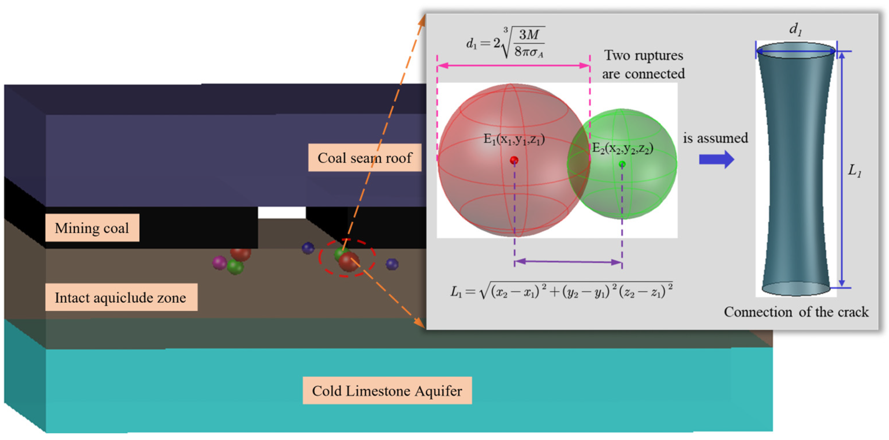 - Theoretical model development: Based on the MS source damage characteristics, the geometric features of the water inrush channels are derived, and an MS-water inrush volume correlation model is established to provide a theoretical basis for subsequent analyses.