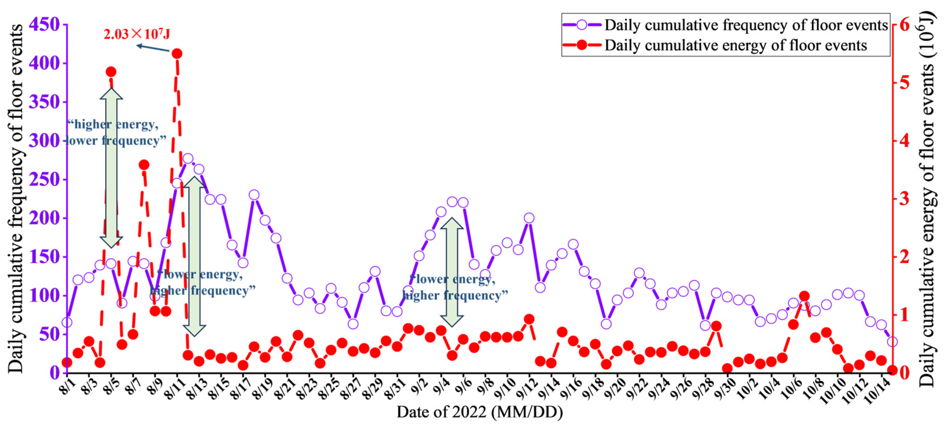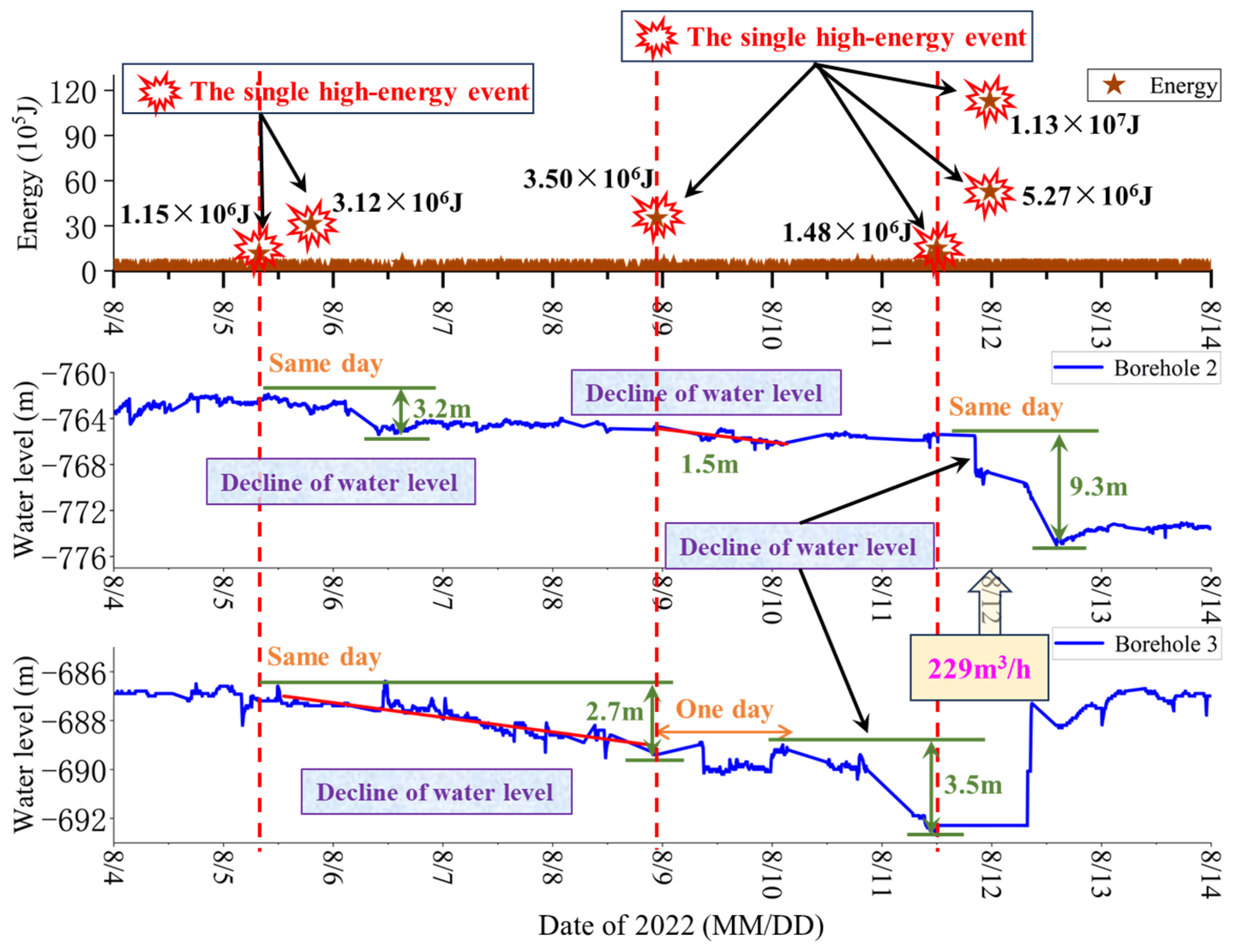 5.2. Correlation Analysis of Single High-Energy Events and Water Level
