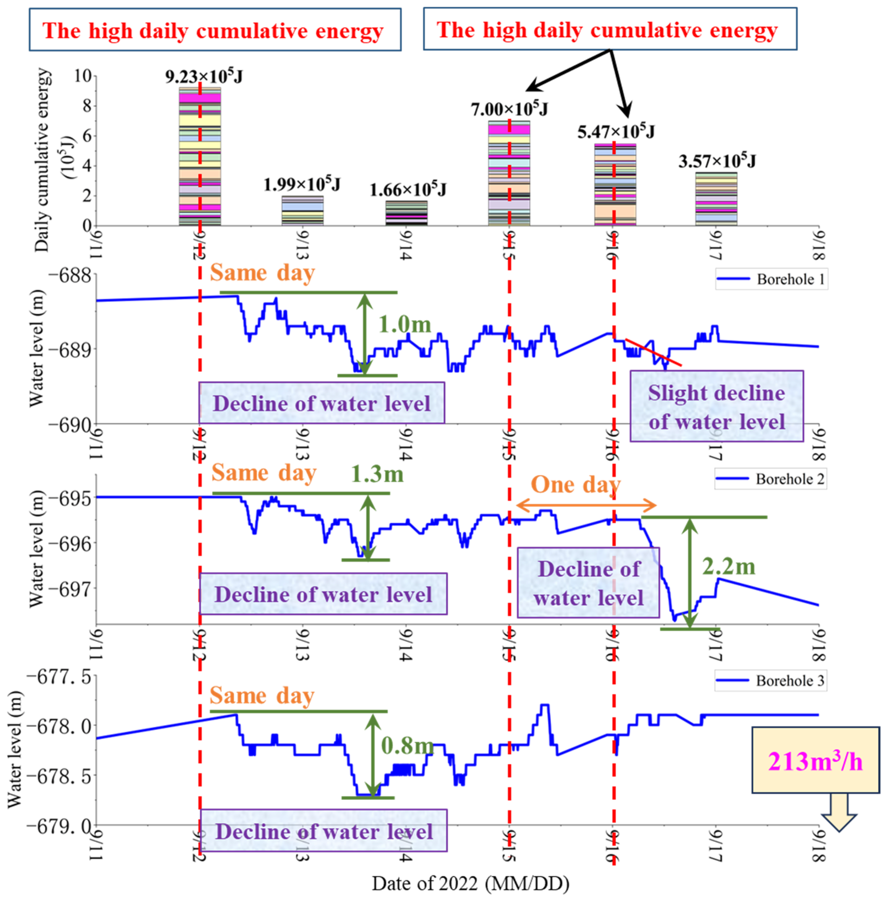 5.3. Correlation Analysis of High Daily Cumulative Energy and Water Level