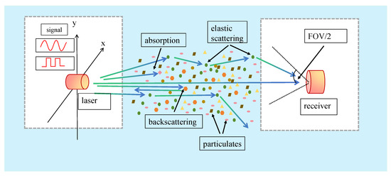 When laser light travels through seawater, the attenuation of photons is mainly caused by suspended particles and dissolved organisms. Scattering alters the propagation path of photons, resulting in attenuation and distortion of the signal at the receiving end. The attenuation of the light beam is the combined effect of absorption and scattering effects. The simulated seawater channel MCS model is illustrated in Figure 1.