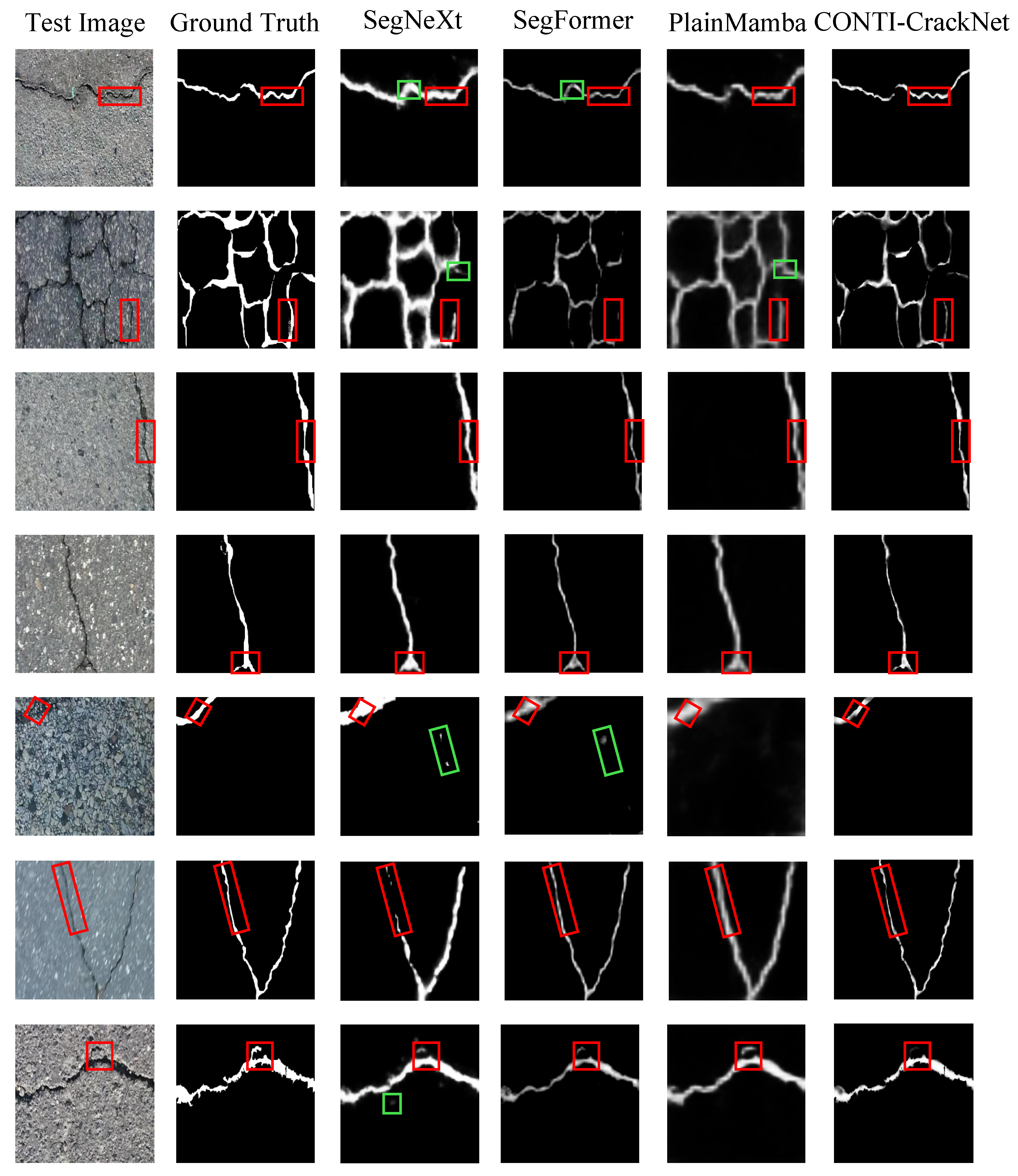 - Liu, H.; Jia, C.; Shi, F.; Cheng, X.; Chen, S. SCSegamba: Lightweight Structure-Aware Vision Mamba for Crack Segmentation in Structures. In Proceedings of the IEEE/CVF Conference on Computer Vision and Pattern Recognition (CVPR), Nashville, TN, USA, 10–17 June 2025; pp. 29406–29416. [Google Scholar] [CrossRef]