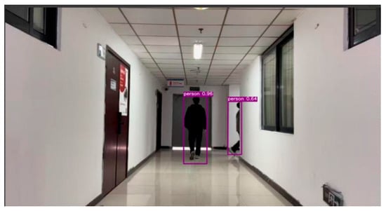 To enhance the robustness of target detection under occlusion conditions, this paper utilizes the coarse target position information provided by UWB to assist visual detection. The specific procedure involves mapping the absolute target coordinates obtained from UWB solution to the image coordinate system via perspective transformation, thereby deriving an estimated pixel region of the target. This region is used to construct a Candidate Box Optimization Region (CBOR). The confidence scores of YOLOv5 detection boxes falling within the CBOR are subsequently enhanced, as shown in Figure 6,which reduces the risk of correct targets being mistakenly eliminated during the Non-Maximum Suppression (NMS) stage due to occlusion.