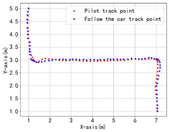 In the course of the experiment, the positioning system demonstrated accuracy in relation to the leader, with no signal loss occurring. Communication across the various system levels was stable, allowing the upper processor to promptly extract both the leader’s movement trajectory and its own attitude orientation through positioning data and real-time wheel speed information. The experimental setup was divided into two conditions: one under a no-load scenario and the other under an 8 kg load condition.