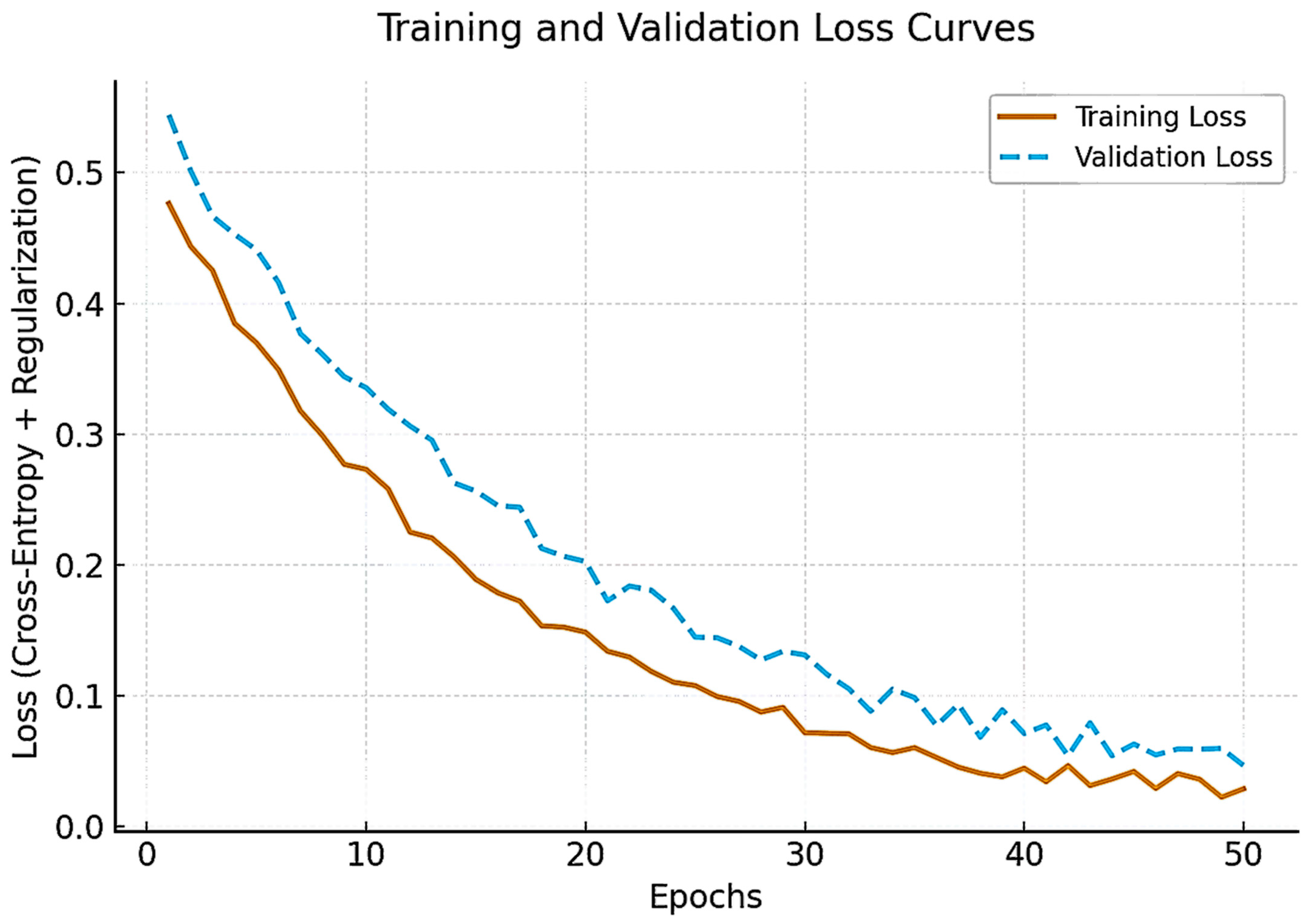−6 were optimized for calibration consistency. The AdamW optimizer with a cosine-annealing schedule provided the most stable convergence across epochs. This combination yielded smooth training–validation loss curves and robust model calibration, confirming effective regularization and minimal overfitting.