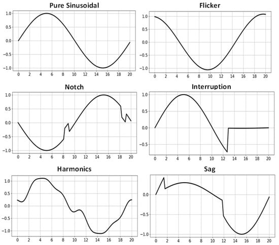 In our evaluations, we utilize the publicly available Seed Power Quality Disturbance Dataset, which is specifically designed for analyzing a wide range of power quality events. The dataset comprises signals with a fundamental frequency of 50 Hz, sampled at a rate of 5 kHz. It includes 17 distinct classes of power disturbances, with each class containing 1000 individual signals. Each signal consists of 100 samples, corresponding to a duration of 20 ms. In one approach, mathematical models defined in standards such as IEEE 1159 [35] can be used to categorize the disturbances. To ensure consistency and facilitate model convergence during training, all signal amplitudes were normalized.