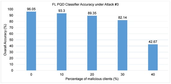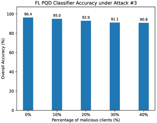 The FL PQD classifier accuracy under Attack #3 using the Median Defense.
