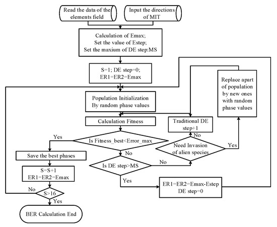 As shown in Figure 7, 16 sets of phase shifts are optimized one by one. The phase shifts that satisfy the requirements of Equation (17) are saved. The other sets of phase shifts are optimized by taking a gradually decreasing value of until 16 sets of phases are obtained. S in Figure 7 is equal to .