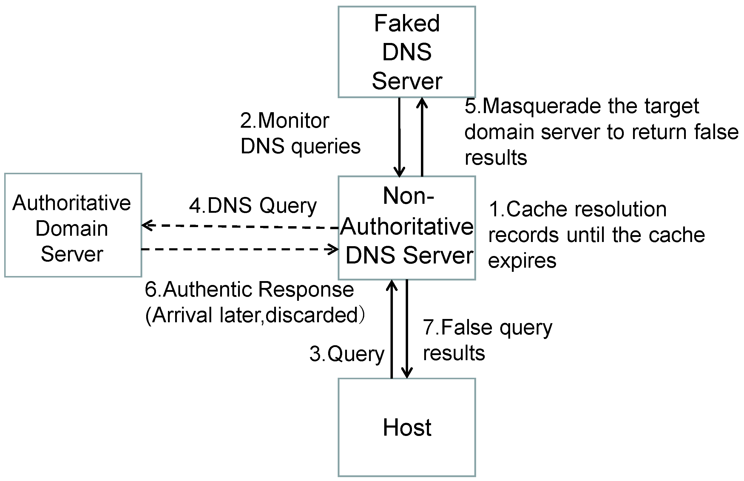 As shown in Figure 2, the specific steps of a fragment assembly attack against DNS Forwarders are as follows: