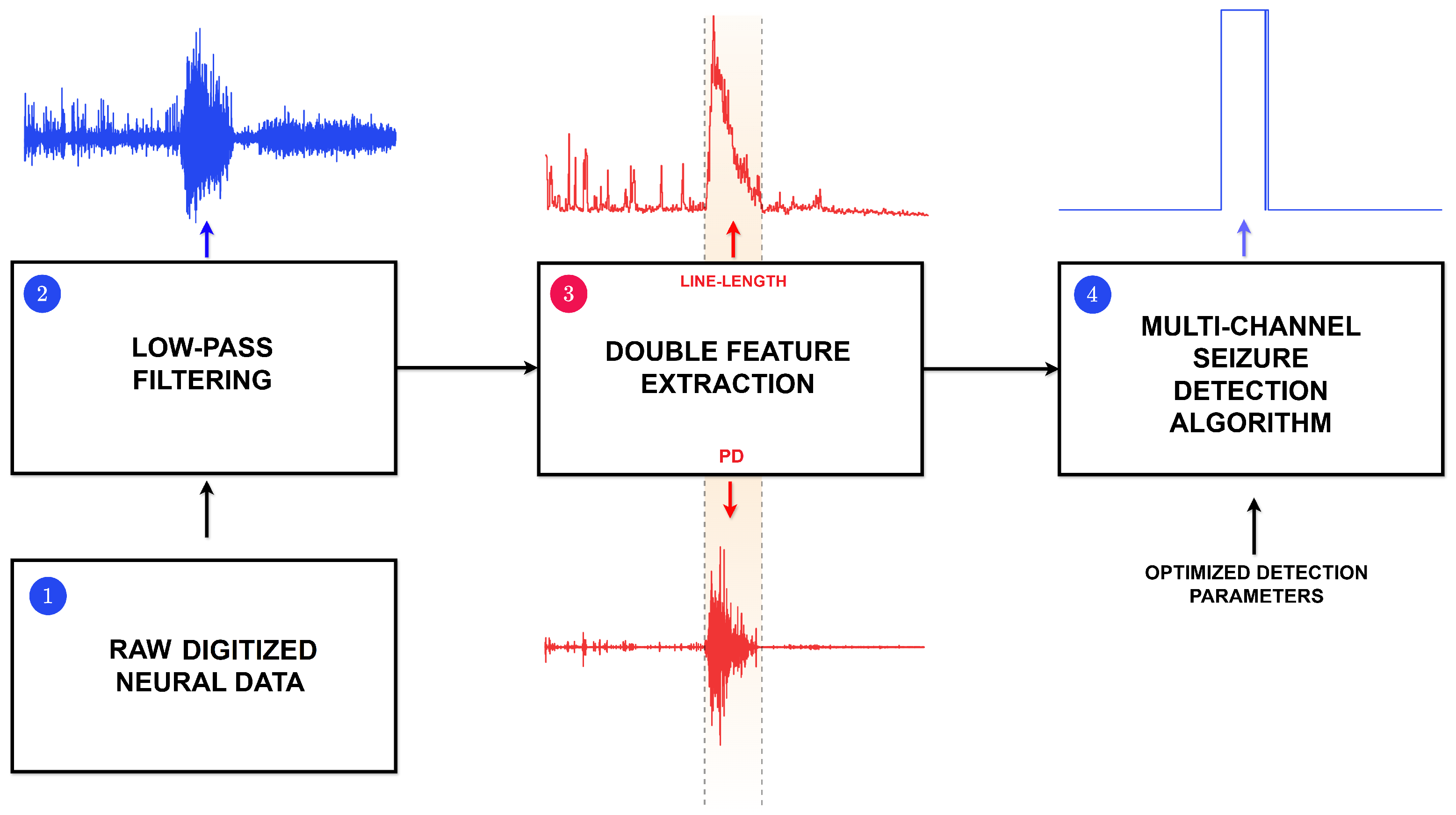 Traditional seizure detection has typically relied on visual inspection of neural recordings, a process that is inherently subjective, time-consuming, and therefore ill-suited not only for automated detection but also for deployment in implantable devices. Developing objective, efficient, and reliable methods for automated seizure detection presents a critical hurdle due to the strong variability of pre-ictal and inter-ictal patterns both within individual patients and across different patients, as well as the non-stationary nature of scalp EEG and intracranial EEG (iEEG) signals. This high variability complicates the design of generalized detection algorithms and introduces an inherent trade-off between sensitivity and accuracy, as systems must balance the minimization of both false positives and false negatives. These challenges make it difficult to develop algorithms capable of maintaining robust performance across diverse individuals and recording conditions.