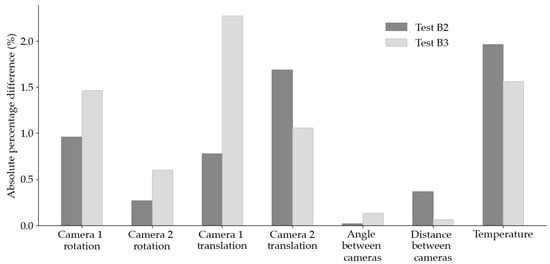 Absolute percentage differences of calibration parameters between pre-test and post-test calibration for Tests B2 and B3.