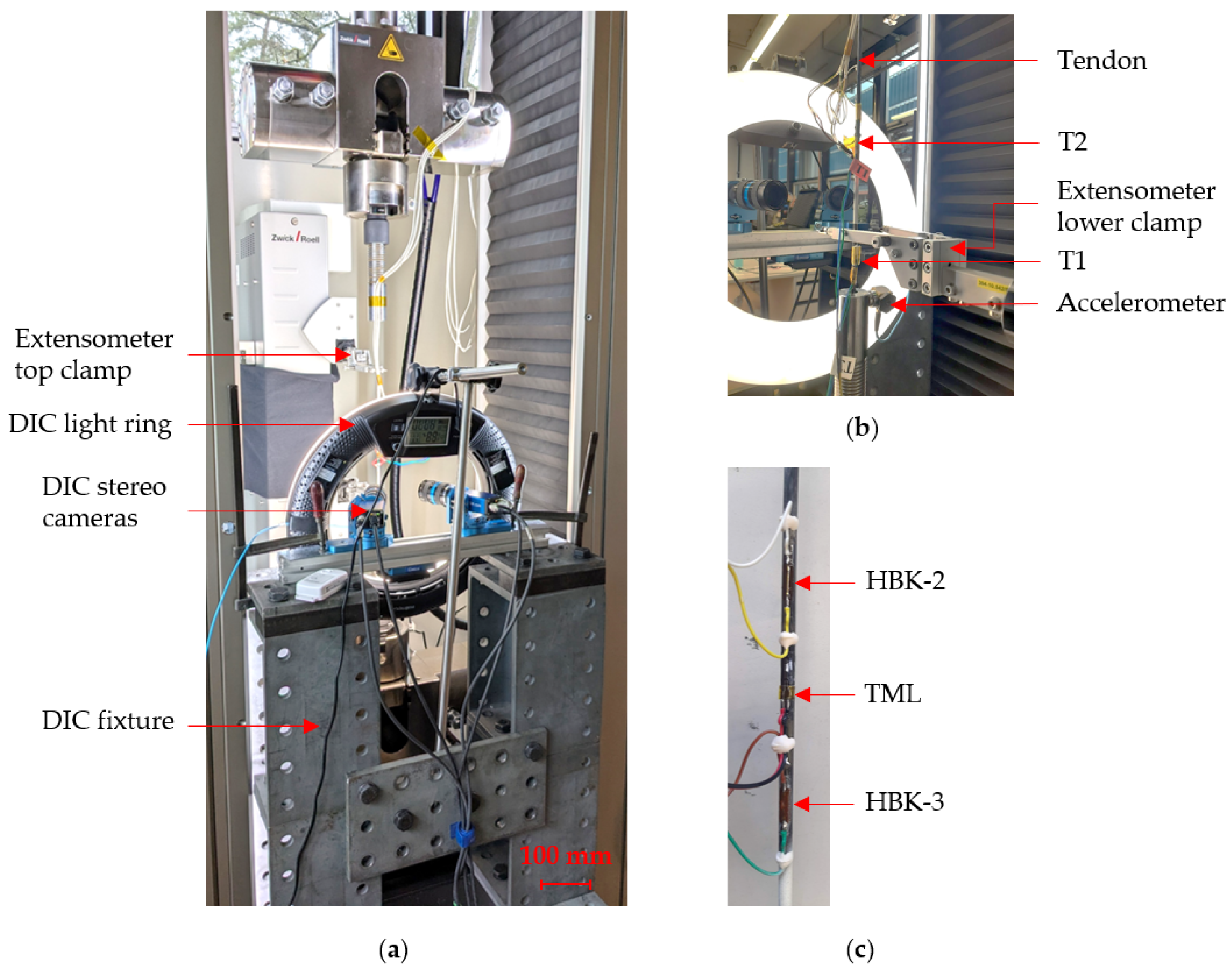 | Test B1 | 88% | 1.53% | 4.2 h (anchor failure) | HBK-3 TML Extensometer DIC | T1, T2 Sensirion Accelerometer |