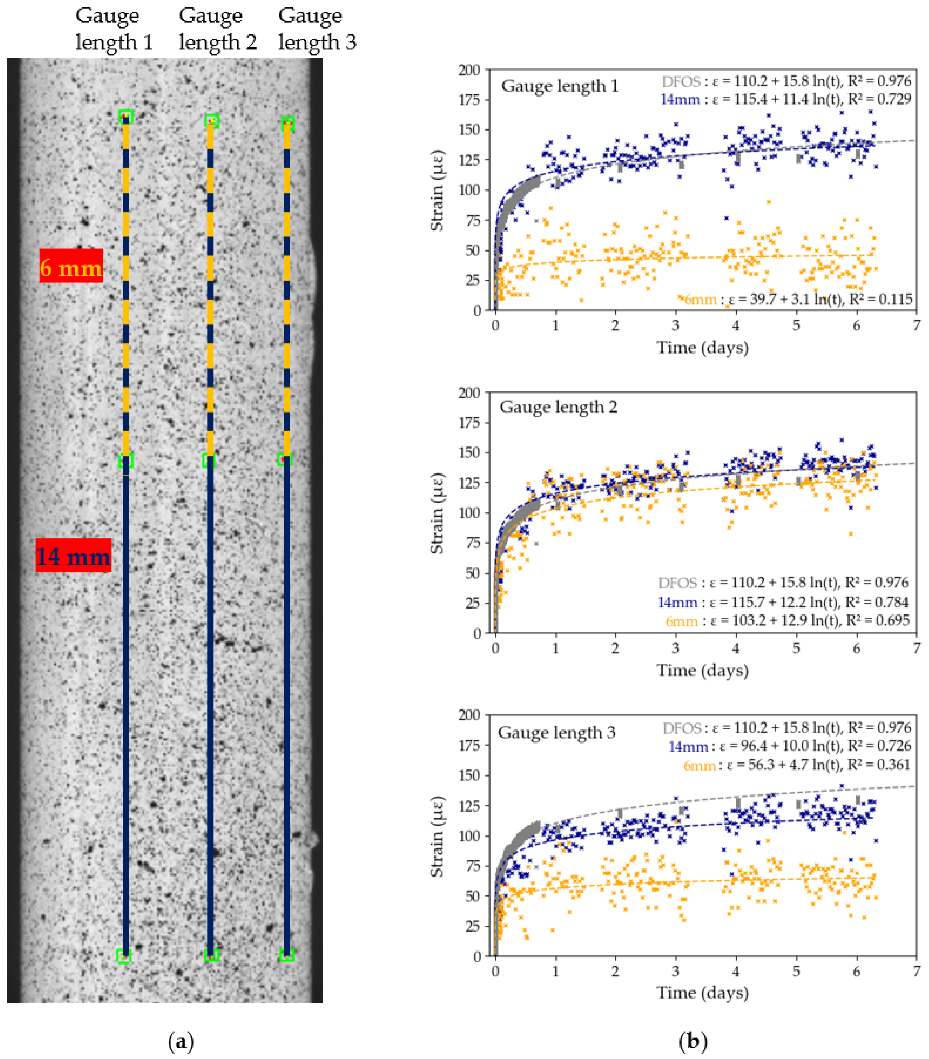 | Extensometer | 0.32 (22 h) | 96.38 + 16.82 ln(t) | 0.897 | 2.03 | |