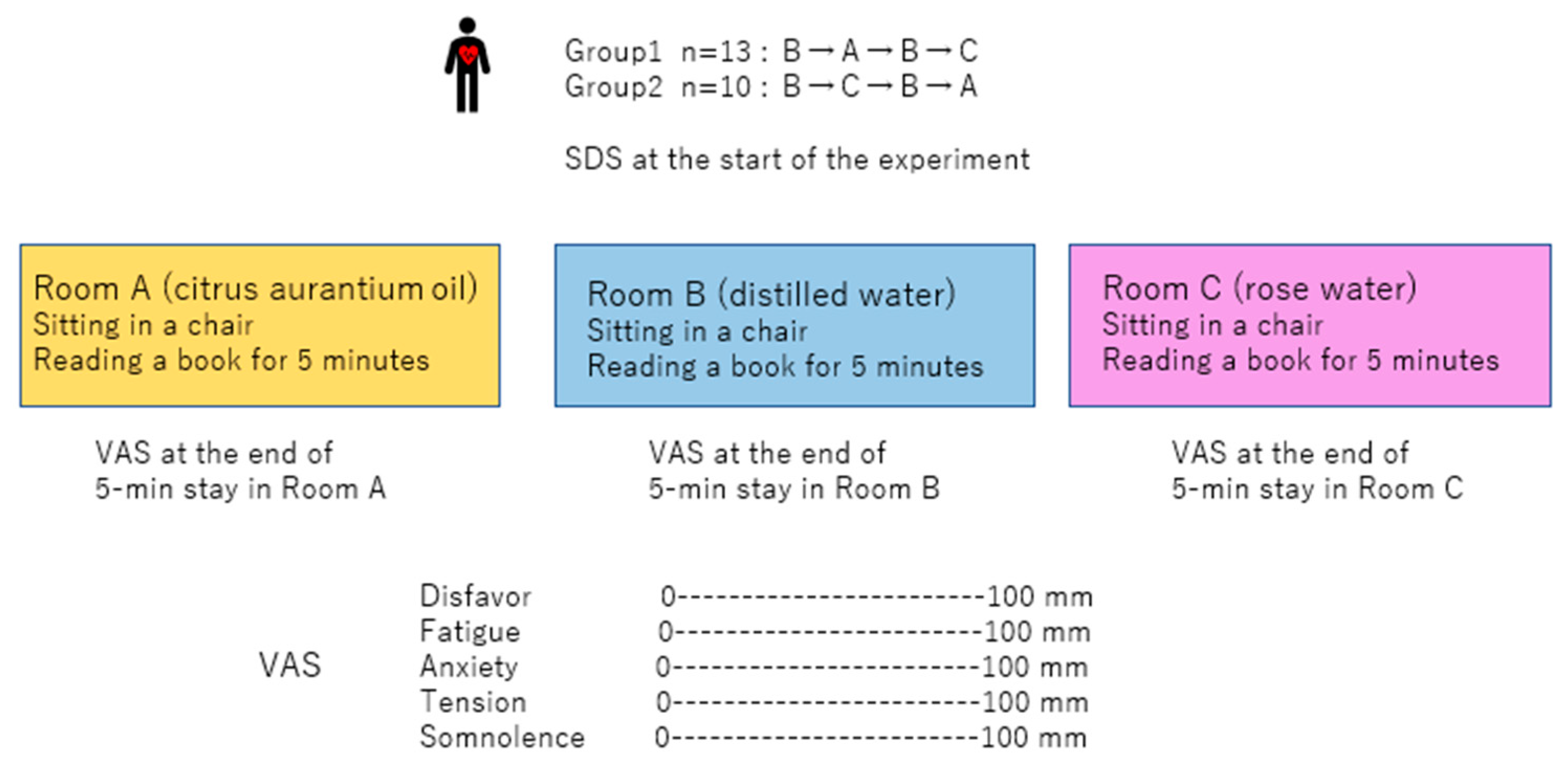3.2. The Different Effects of Citrus Aurantium Oil and Rose Water Treatments on VAS Scores
