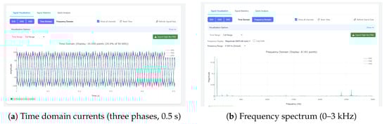 The chosen preprocessing thresholds and filters are consistent with recommendations in IEEE Std 1415-2006 [22] for induction machine monitoring, ensuring compatibility with established asset diagnosis methodology. Field testing at El Oued further validated that these settings preserved all major fault-related spectral features while effectively attenuating environmental and drive-related noise.