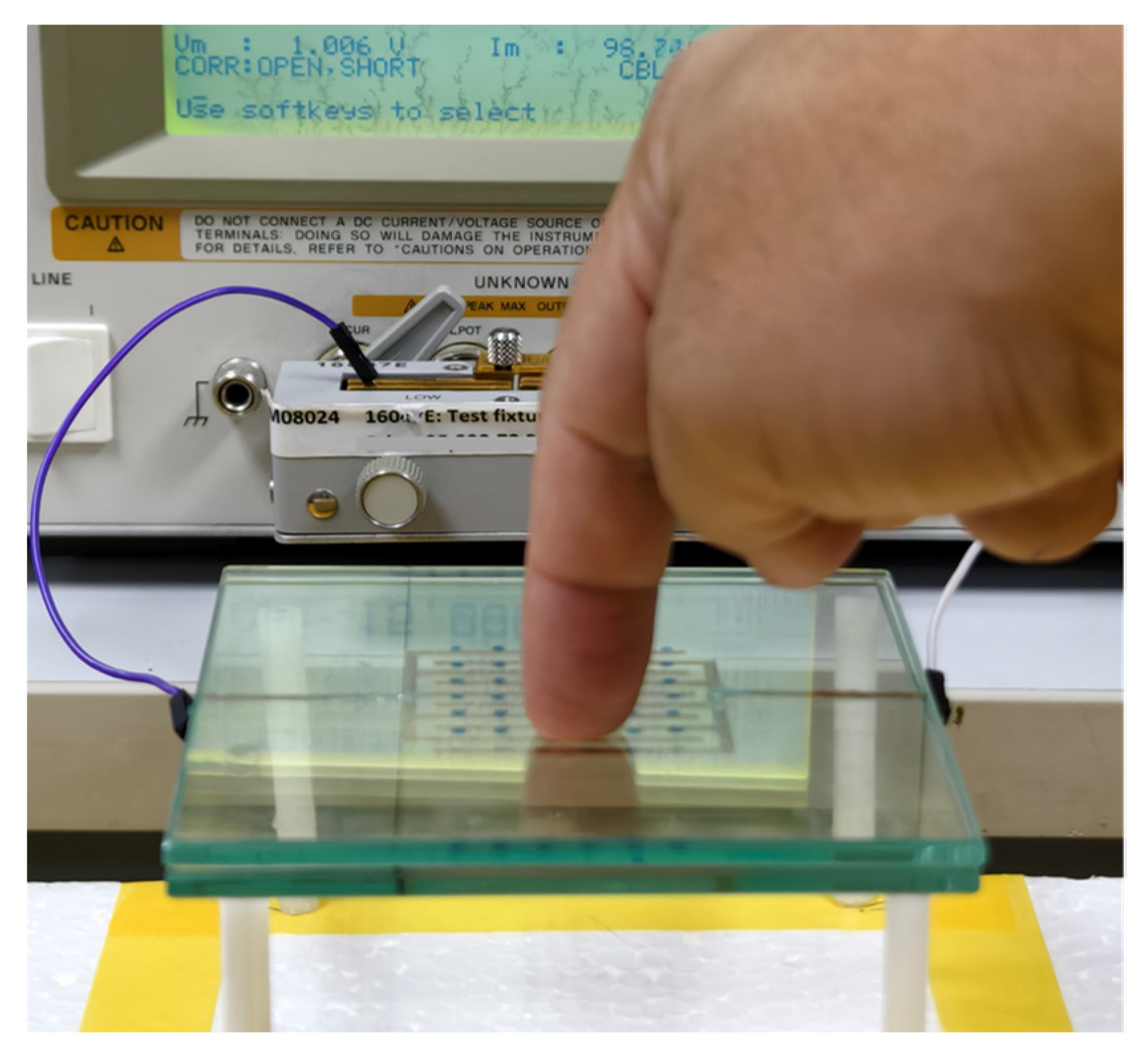 To analyze the capacitance change during a touch event, an experiment was conducted using IDCS with a 4 mm thick glass overlay as shown in