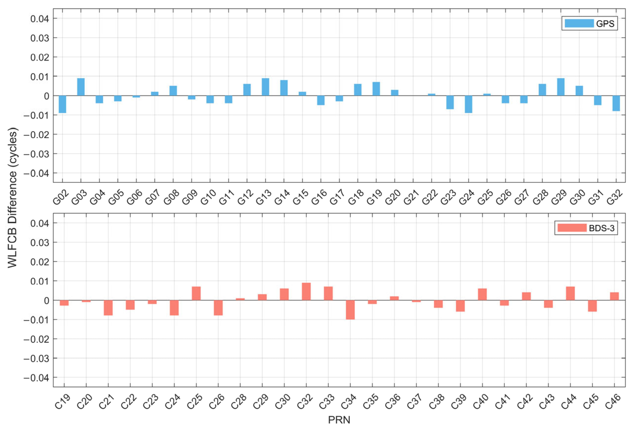13]. Since 2015, WLFCB and NLFCB products for GPS satellites have been made available by the School of Geodesy and Geomatics (SGG) at Wuhan University [