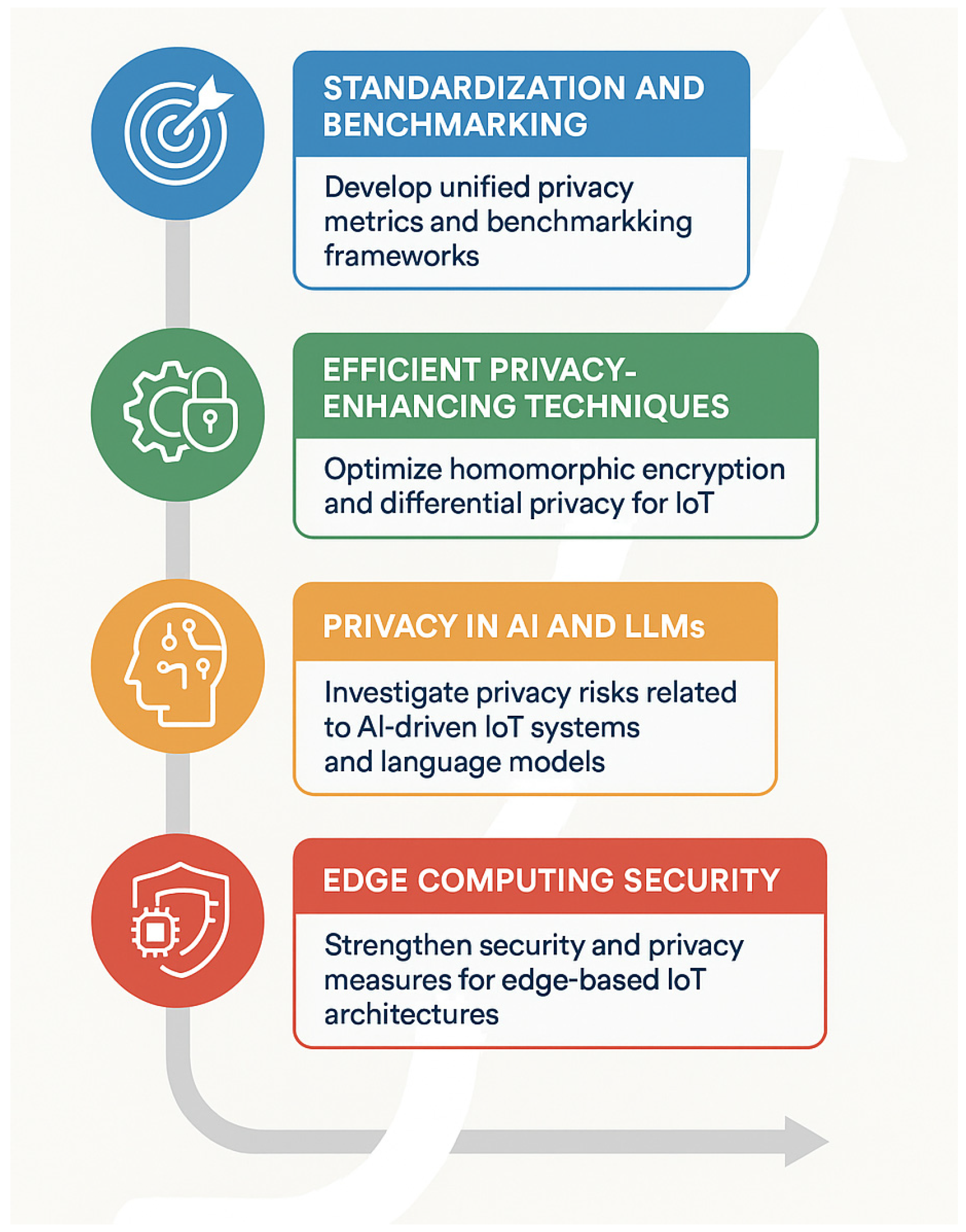 - Cross-Domain Interoperability: Privacy solutions should enable seamless protection across smart home, healthcare, industrial, and vehicular IoT environments.