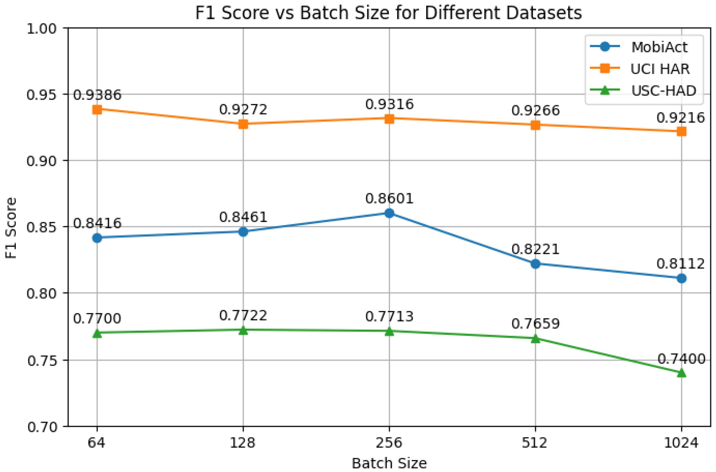 | Method | Metric | MobiAct | UCI HAR | USC-HAD |