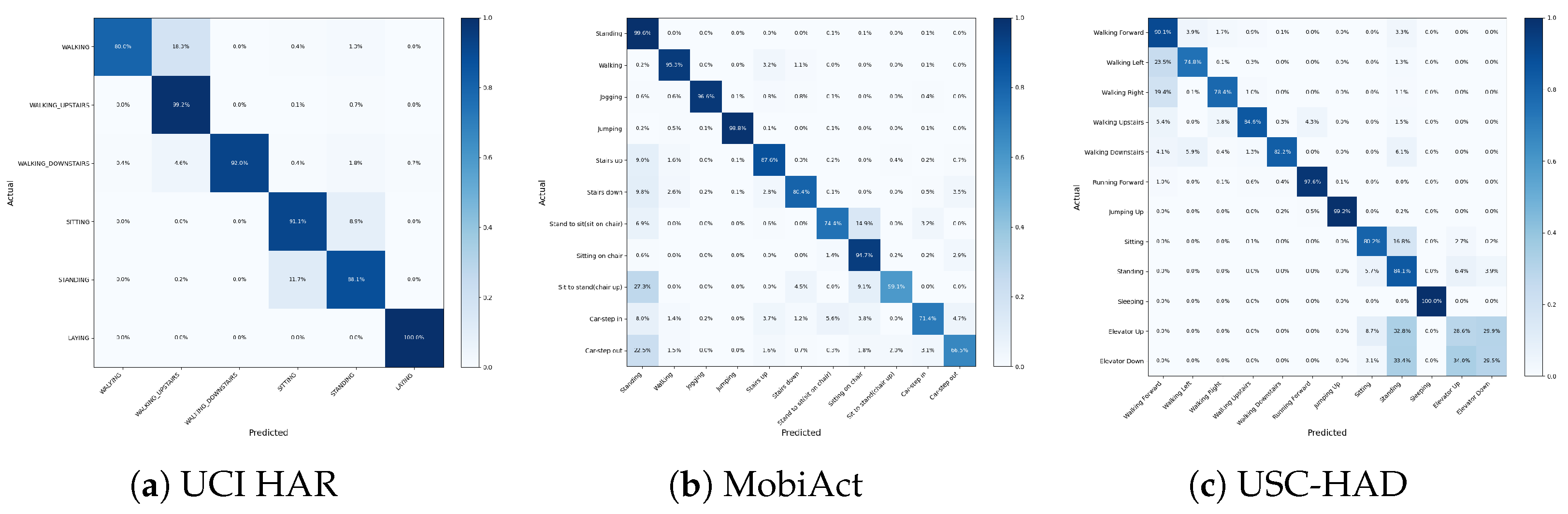 | Method | MobiAct | UCI HAR | USC-HAD |