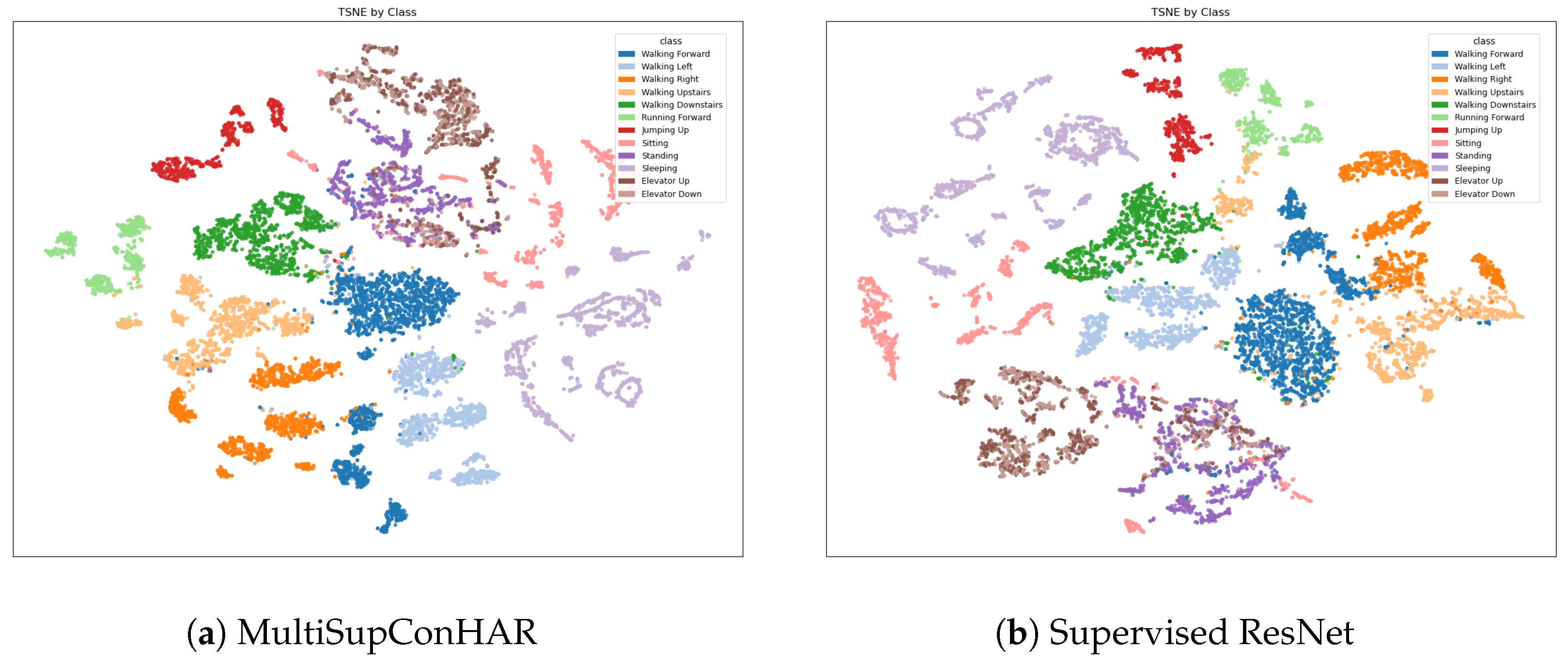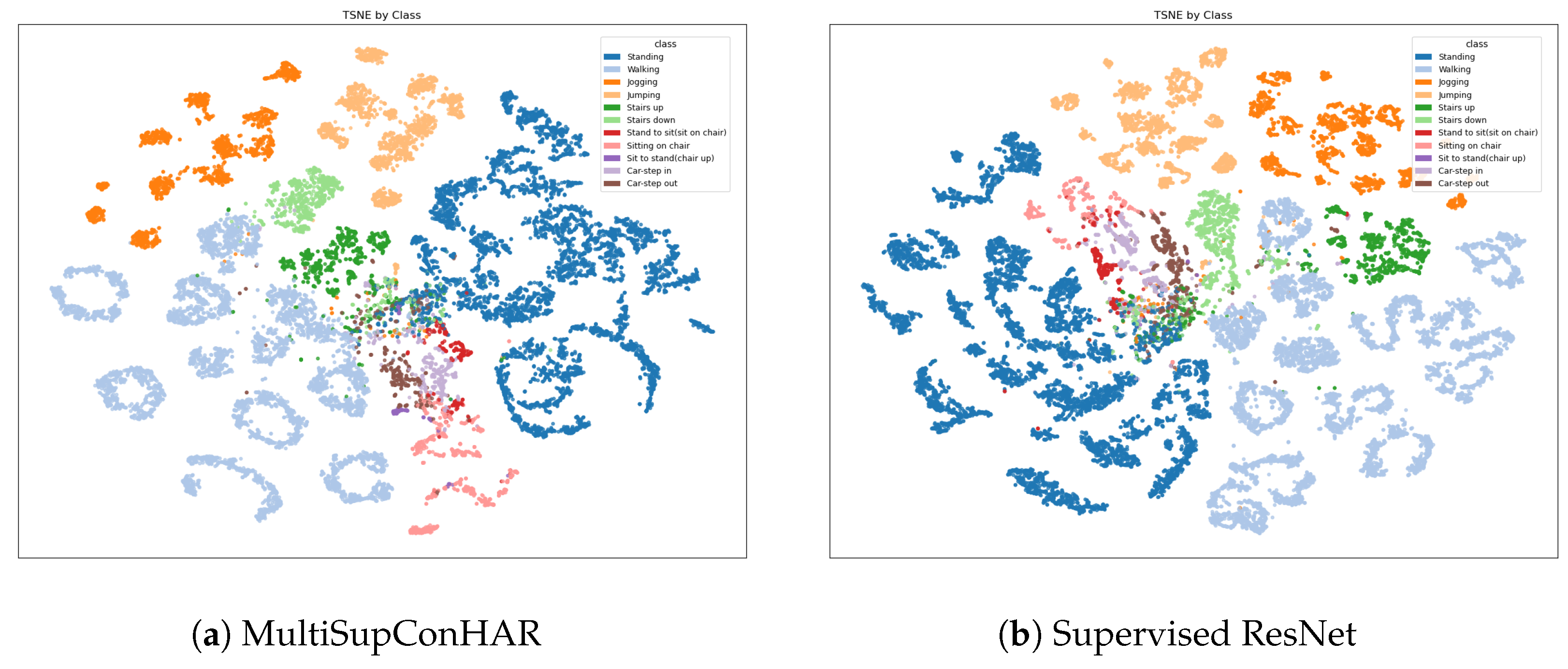 - MultiSupConHAR (SupCon Act + User): Our proposed method, where the model is trained end-to-end by jointly optimizing the classification loss and the supervised contrastive loss.
