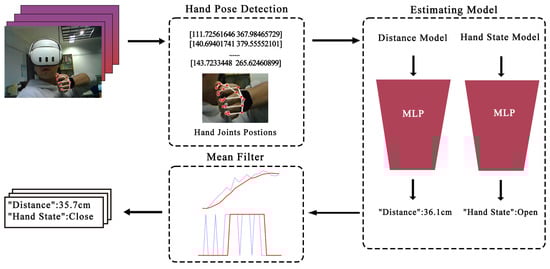 Model Training and Performance: Two independent Multilayer Perceptron (MLP) networks were trained on this dataset: one for hand posture classification (“Open”/“Closed”) and another for distance regression. The input to both networks was the vector of 2D joint coordinates from a single frame. We employed an 80:20 random split for training and testing. The distance regression model achieved a Mean Absolute Error (MAE) of less than 2 cm on the test set, which corresponds to a relative error of approximately 4% given the typical draw distance range of 45–50 cm. The binary posture classification model achieved an accuracy of approximately 95% on the test set. The model’s prediction latency is approximately 30 ms.