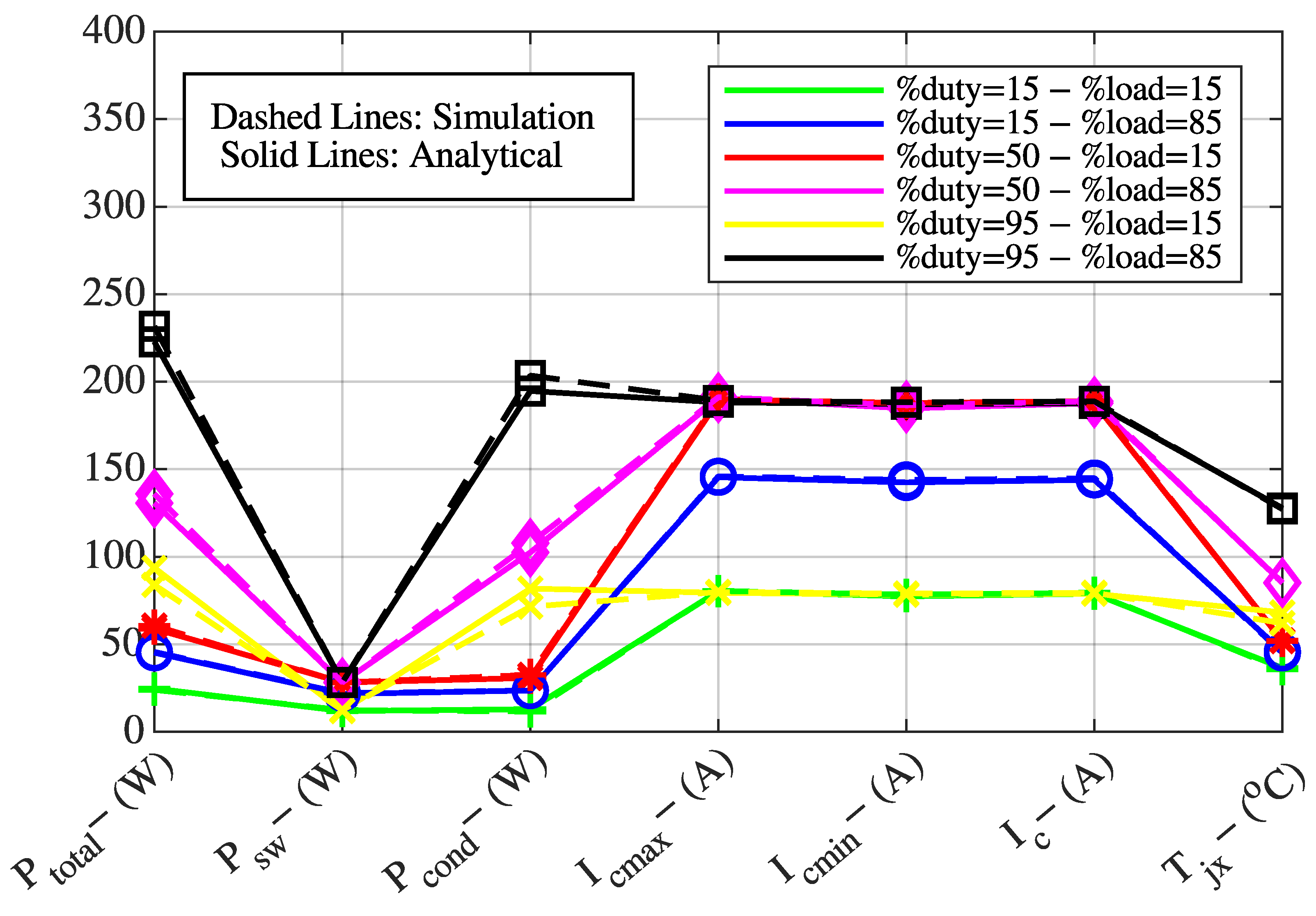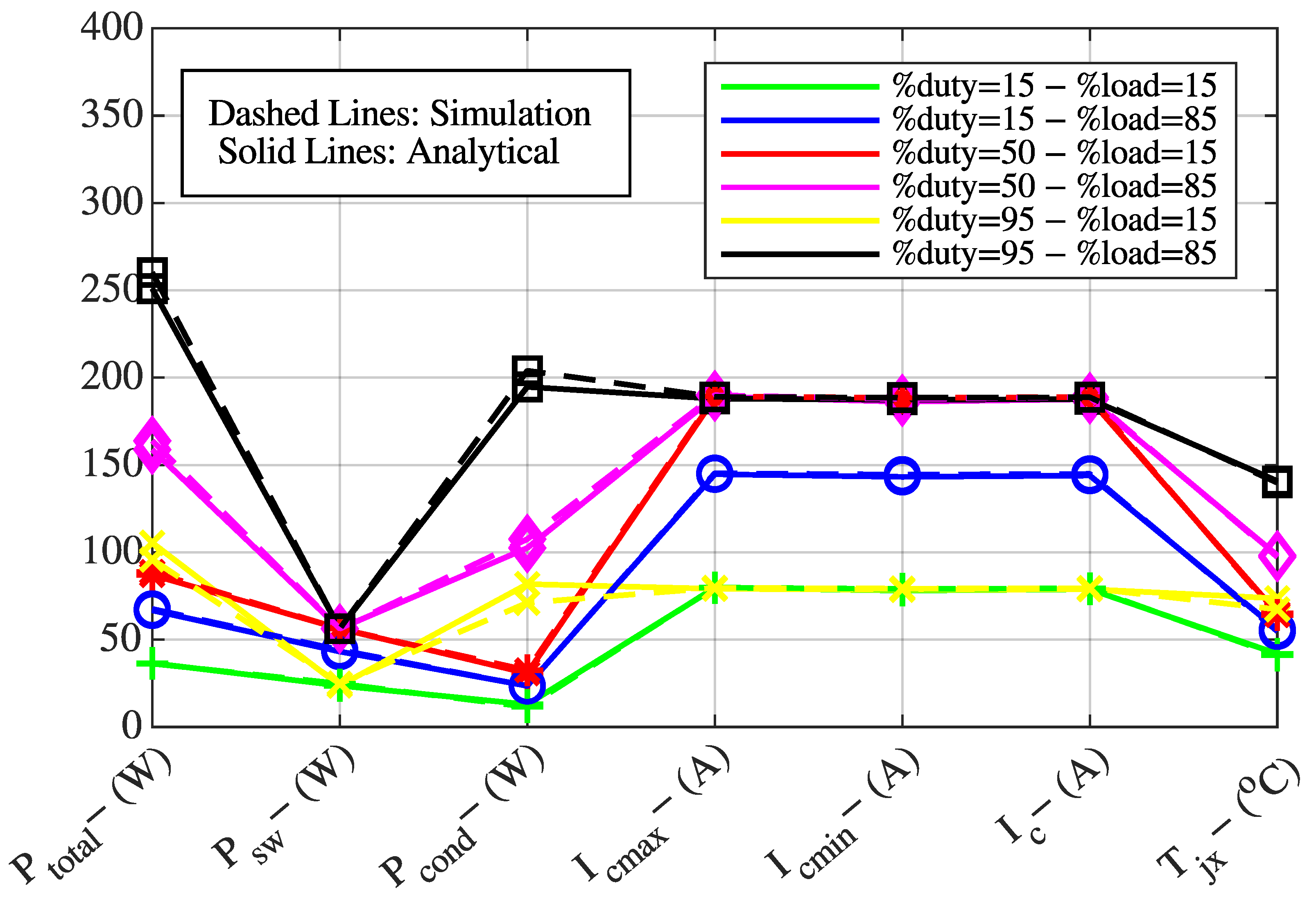19]. The ripple in the DC bus current also shortens the lifetime of DC bus capacitors. Reducing the current ripple requires increasing the switching frequency. However, doing so also increases switching losses. Therefore, an optimal switching frequency must be determined to balance these opposing effects—reducing losses while minimizing ripple and extending capacitor life [