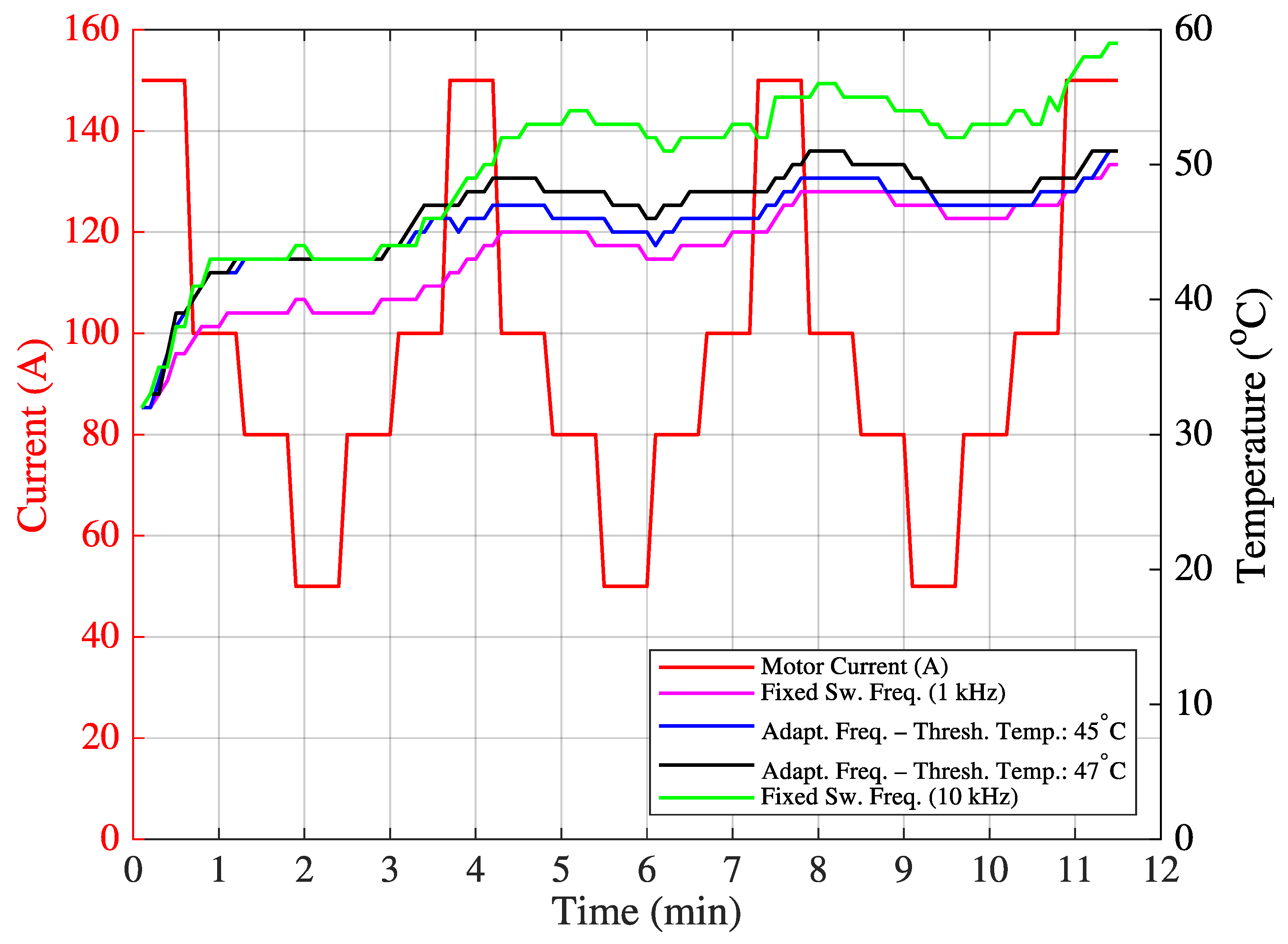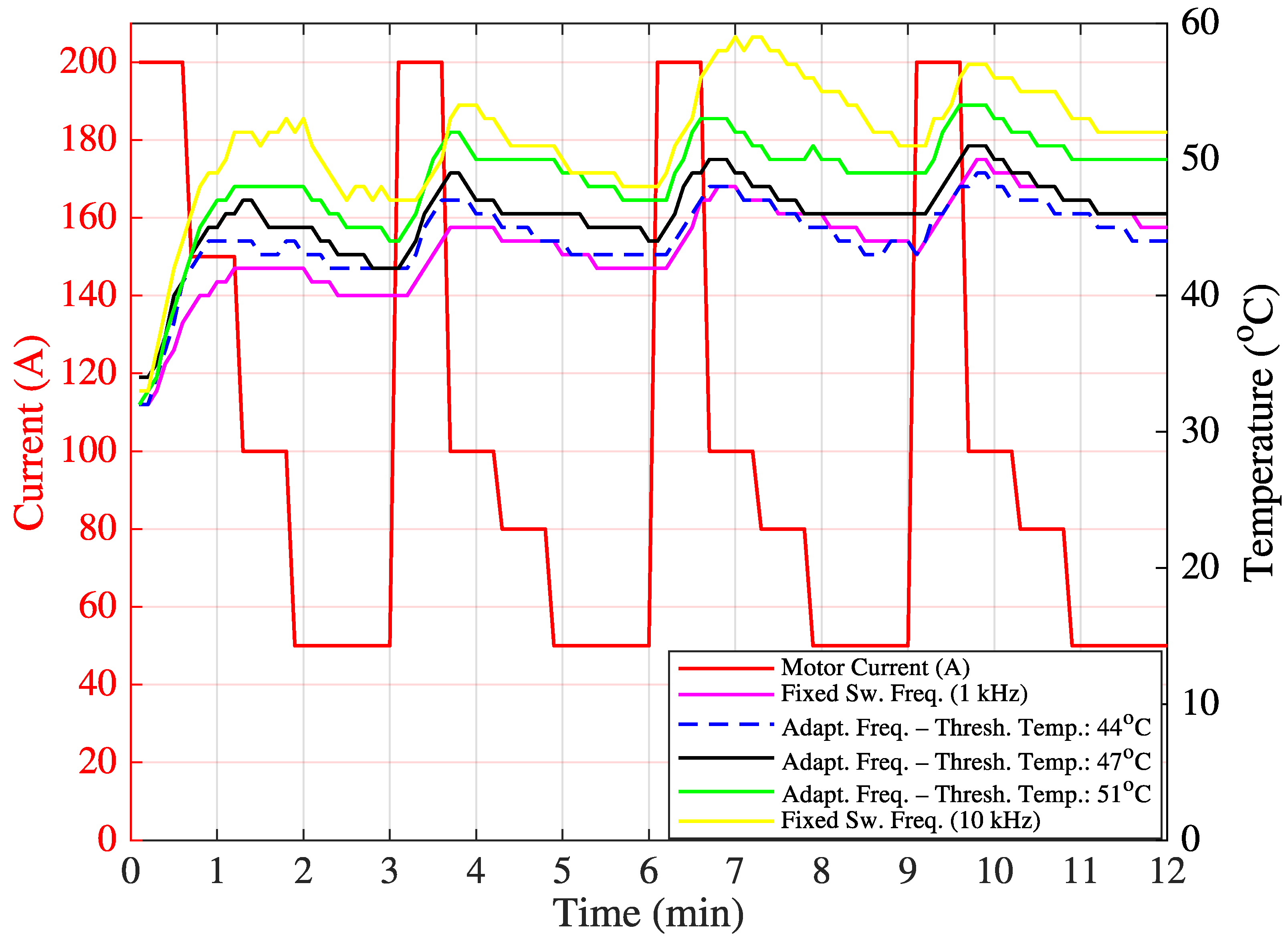 Studies in the literature have shown that increasing the switching frequency is an effective solution to mitigate the adverse effects of motor current ripple on both motor and power semiconductors, without increasing hardware costs [