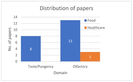 We conducted a structured literature search to identify recent primary studies and reviews on biomimetic olfactory and taste biosensors, hybrid (e-nose/e-tongue) systems, and AI-enabled sensing workflows. Searches were run in Web of Science, Scopus, PubMed, and IEEE Xplore, with supplementary snowballing via Google Scholar. The core time window was January 2015–October 2025 to capture modern transducer, nanomaterials, and AI developments; a limited number of pre-2015 publications were included when they provided foundational concepts (e.g., early OBP/FET work, classic e-tongue texts) that remain relevant. We combined controlled vocabulary and keywords; representative Boolean strings included: (“bioelectronic nose” OR “biomimetic olfactor” OR “olfactory receptor” OR “odorant-binding protein” OR “OR-FET” OR “graphene FET” OR “OECT”) AND (sensor OR biosensor) and (“electronic tongue” OR “taste receptor” OR “T1R” OR “T2R” OR “TRPV1” OR “chemical tongue”) AND (biosensor OR sensor), together with (“multimodal” OR “hybrid” OR “fusion”) AND (nose OR tongue) and (machine learning OR deep learning OR domain adaptation OR data fusion). Inclusion criteria were: peer-reviewed articles (and a small number of book chapters where they provide methods or device fundamentals), English language, clear experimental or engineering content on biomimetic recognition (receptors, OBPs, peptides, MIPs, organoids/cells) or established e-nose/e-tongue arrays used as comparators, and quantitative performance/metrics when available. Exclusion criteria were: patents, theses, preprints without peer review, purely computational works with no sensing interface, studies focused solely on non-bio chemi-resistors unless used as comparators, non-English articles, and items with retraction/major integrity flags. Records were deduplicated across databases, then screened by title/abstract; full texts were reviewed for eligibility and to extract device class, recognition element, transducer, sample domain, and performance metrics. Snowballing from reference lists added recent or seminal items missed by indexing. The resulting corpus underpins the tables and comparisons in this review; pre-2015 citations are retained selectively for foundational context, while the emphasis of the analysis is on 2015–2025 advances. Where applicable, we note grey-area cases (e.g., conventional MOS arrays) explicitly as comparators rather than biomimetic exemplars to maintain a clear scope. The distribution of publisher domains for the included studies (n = 147) is summarized in Table 2 (MDPI 38.10%, Elsevier/ScienceDirect 25.85%, ACS 8.84%, Wiley 6.12%, Nature/Springer Nature 4.76%, SpringerOpen/BMC 2.04%, Frontiers 2.72%, RSC 1.36%, IEEE Xplore 1.36%, ECS Digital Library 1.36%, AAAS 1.36%, Others 6.12%).