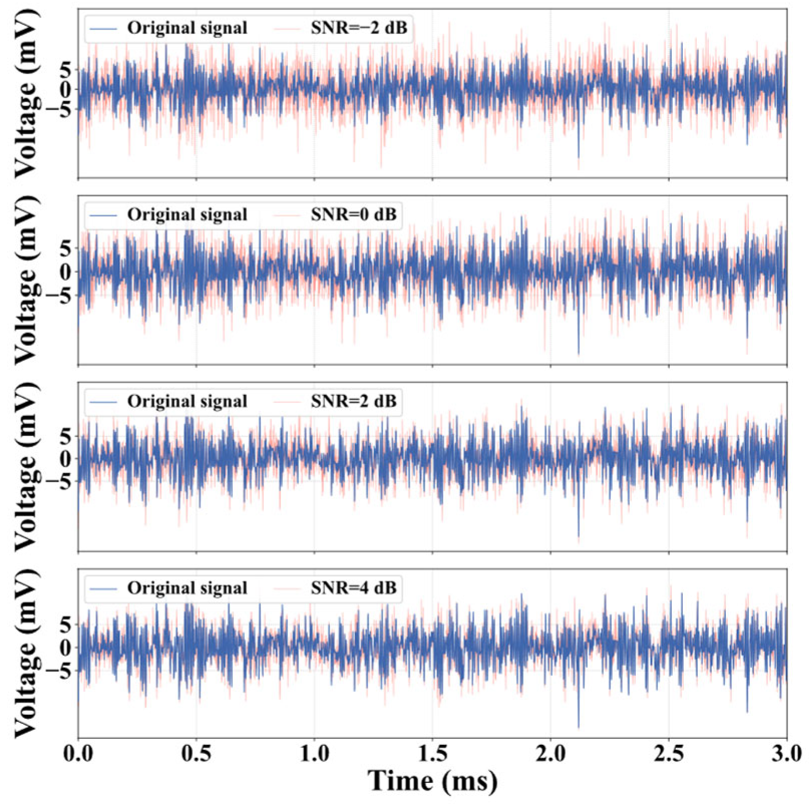- Comparative experiments with six different deep learning models under noisy conditions confirm that the proposed model maintains high recognition accuracy and strong noise resistance, even under substantial noise interference.