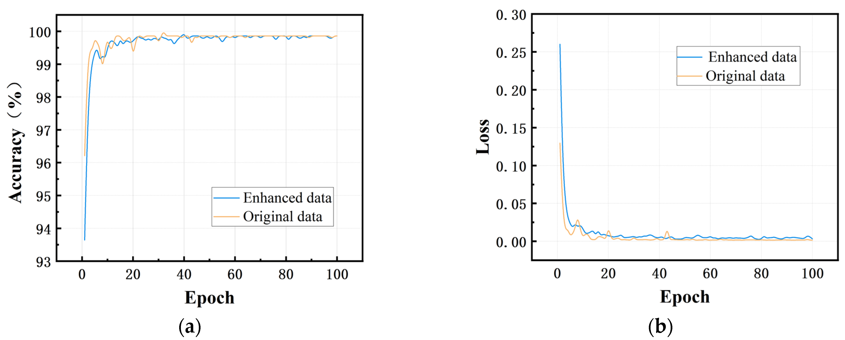 - The use of data augmentation techniques—specifically data segmentation and Gaussian noise injection—substantially enhances the model’s generalization ability and noise robustness. Comparative experiments confirm that the augmented model outperforms the non-augmented version in terms of accuracy, training loss, and anti-noise performance.