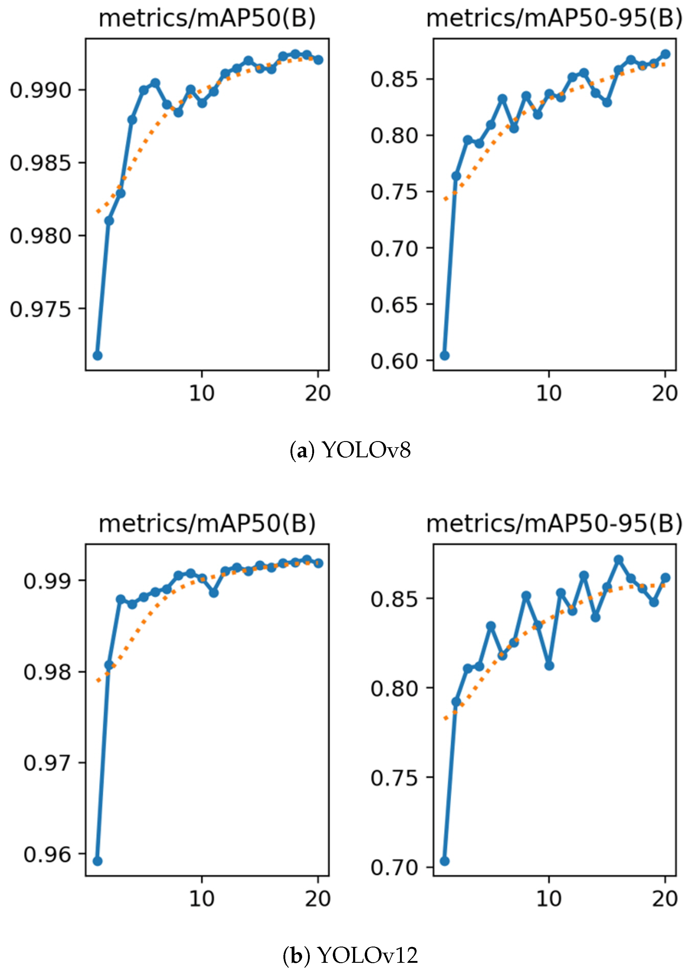 - Jocher, G.; Chaurasia, A.; Qiu, J. YOLO by Ultralytics (Version 8.0.0) [Computer Software]. 2023. Available online: https://github.com/ultralytics/ultralytics (accessed on 15 October 2025).
