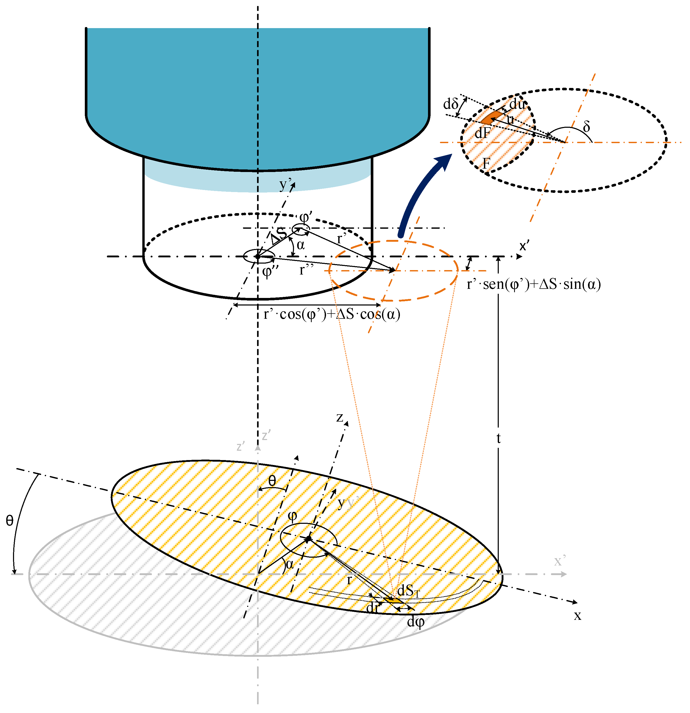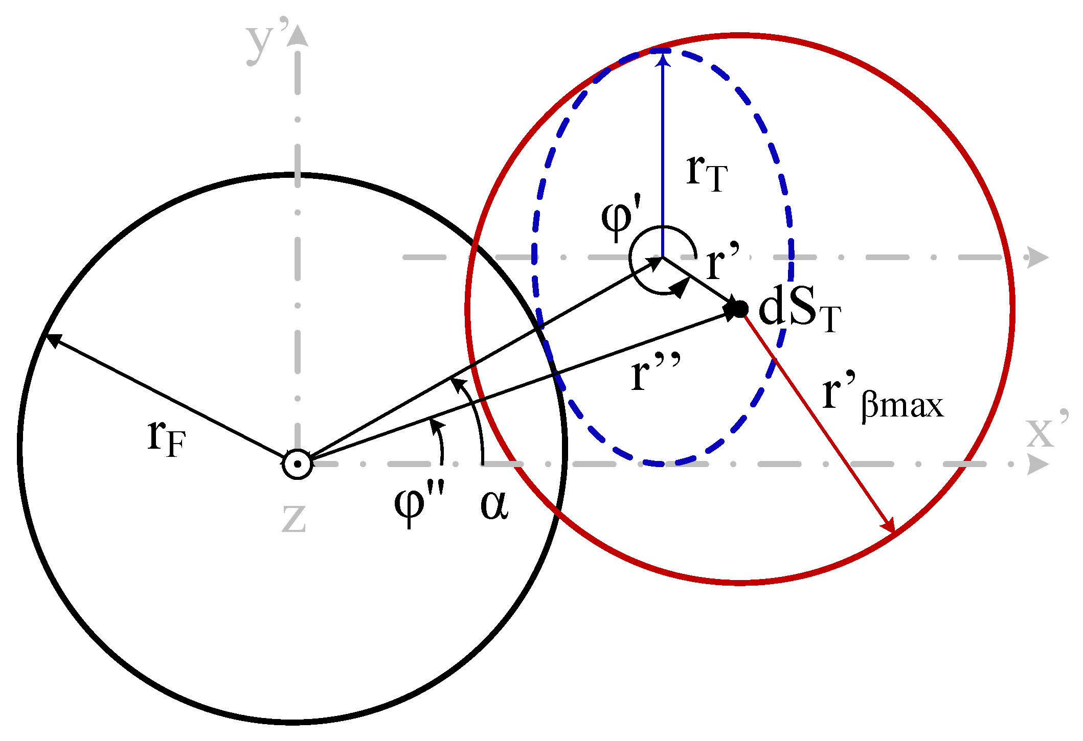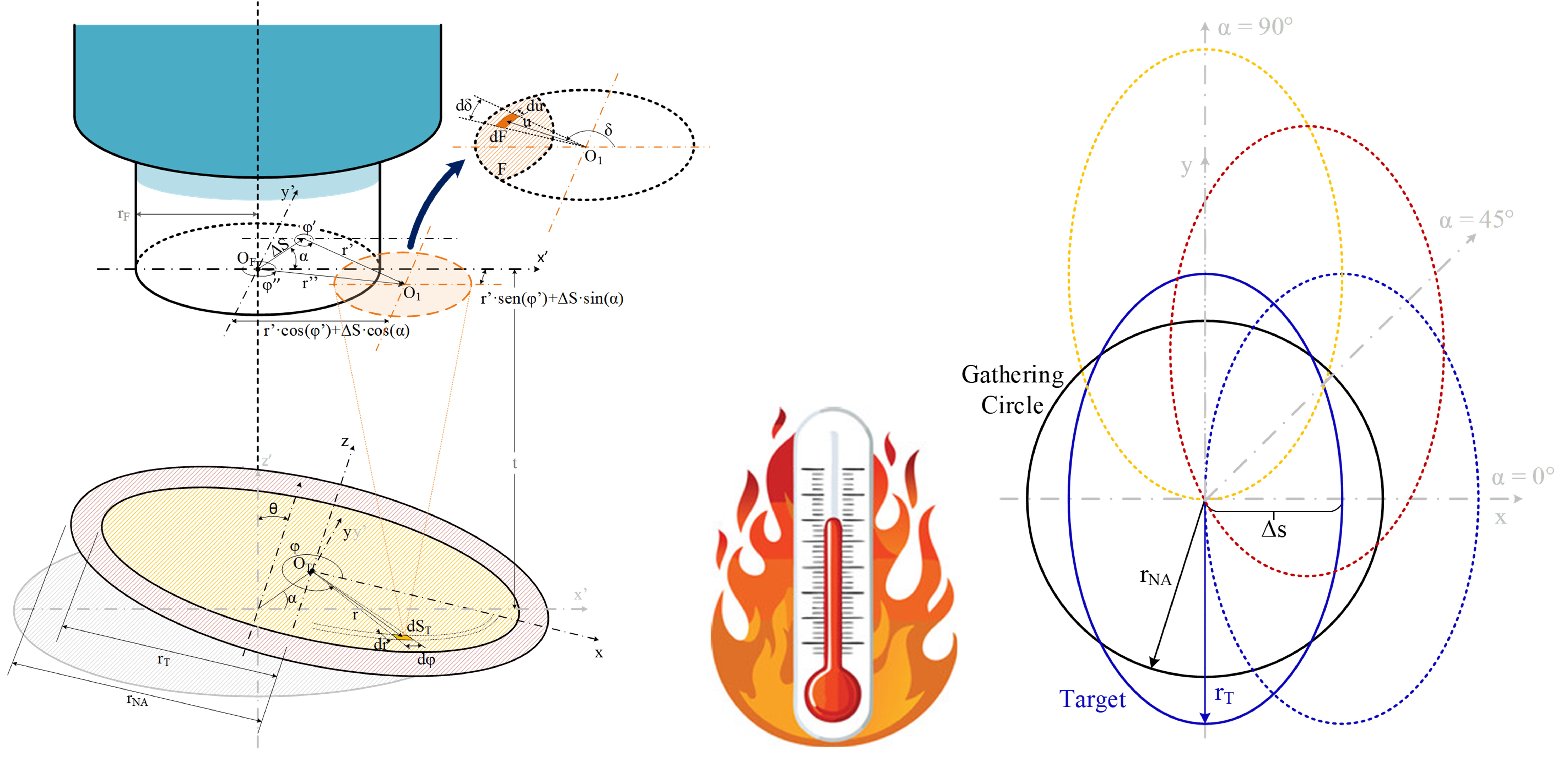 | r | Radial coordinate of dST on the plane of the target | δ | Azimuthal coordinate of each differential element of area dF |