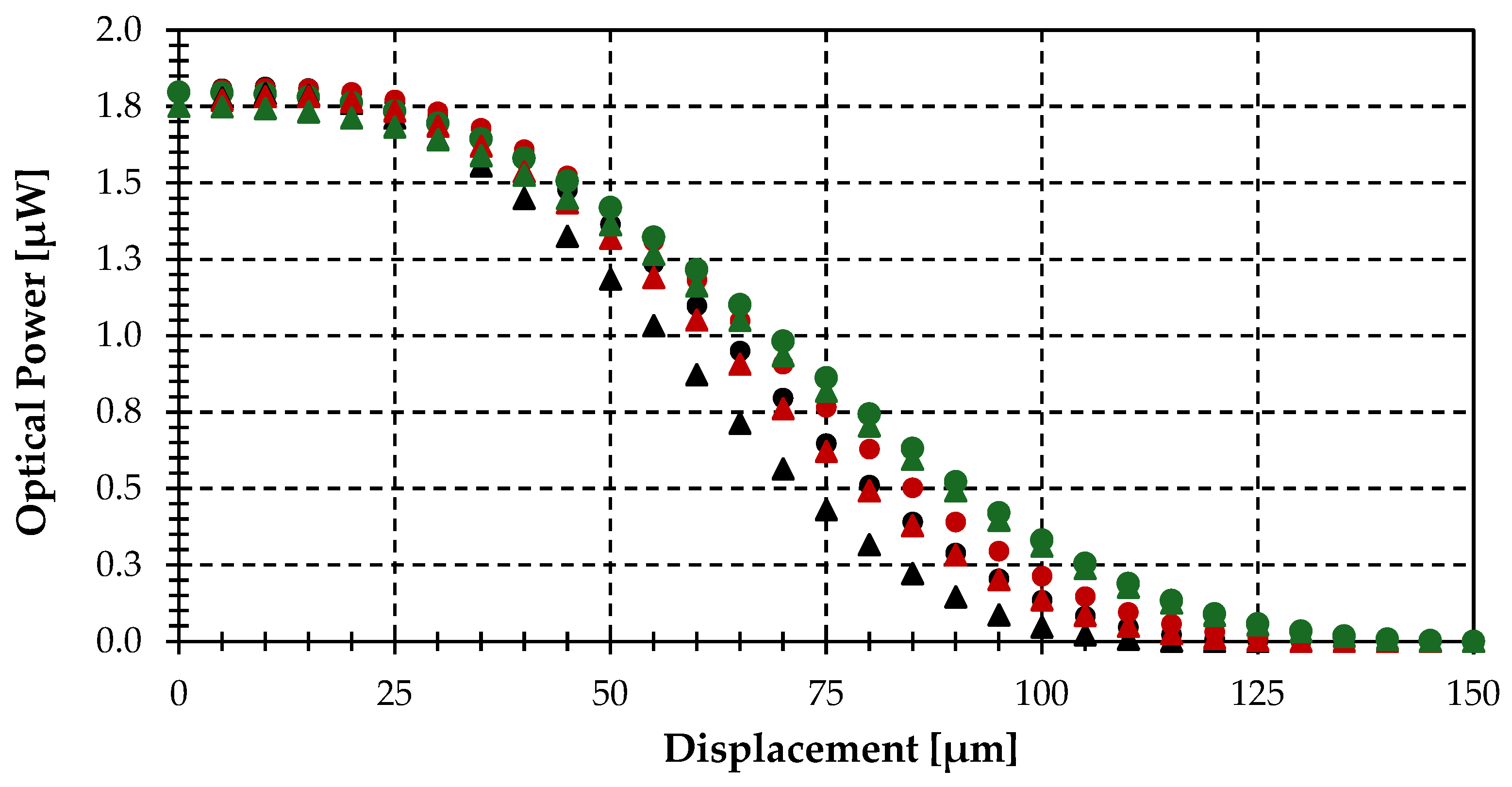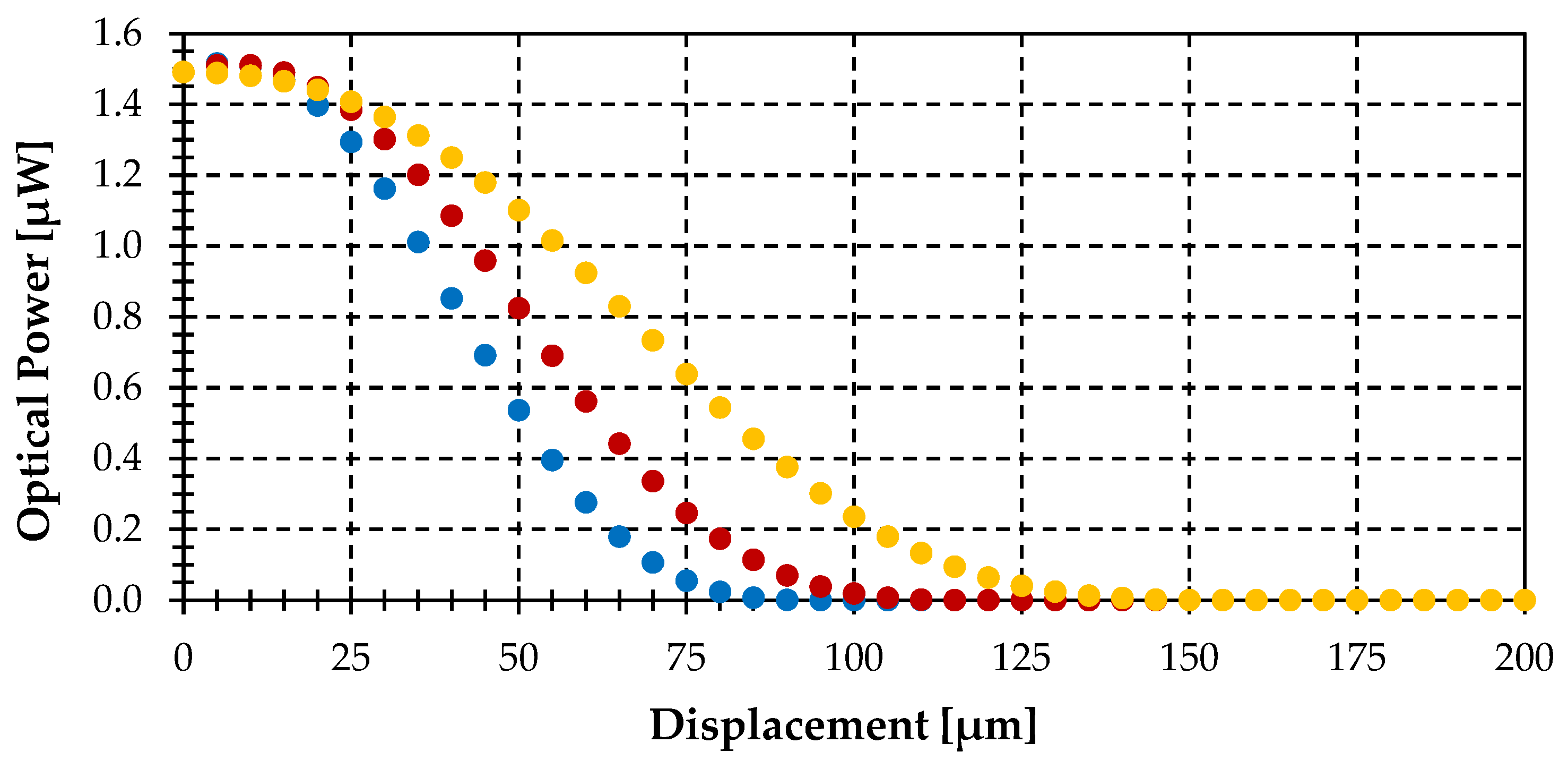 - Kam, W.; Ong, Y.S.; O’Keeffe, S.; Mohammed, W.S.; Lewis, E. An Analytical Model for Describing the Power Coupling Ratio between Multimode Fibers with Transverse Displacement and Angular Misalignment in an Optical Fiber Bend Sensor. Sensors 2019, 19, 4968. [Google Scholar] [CrossRef]