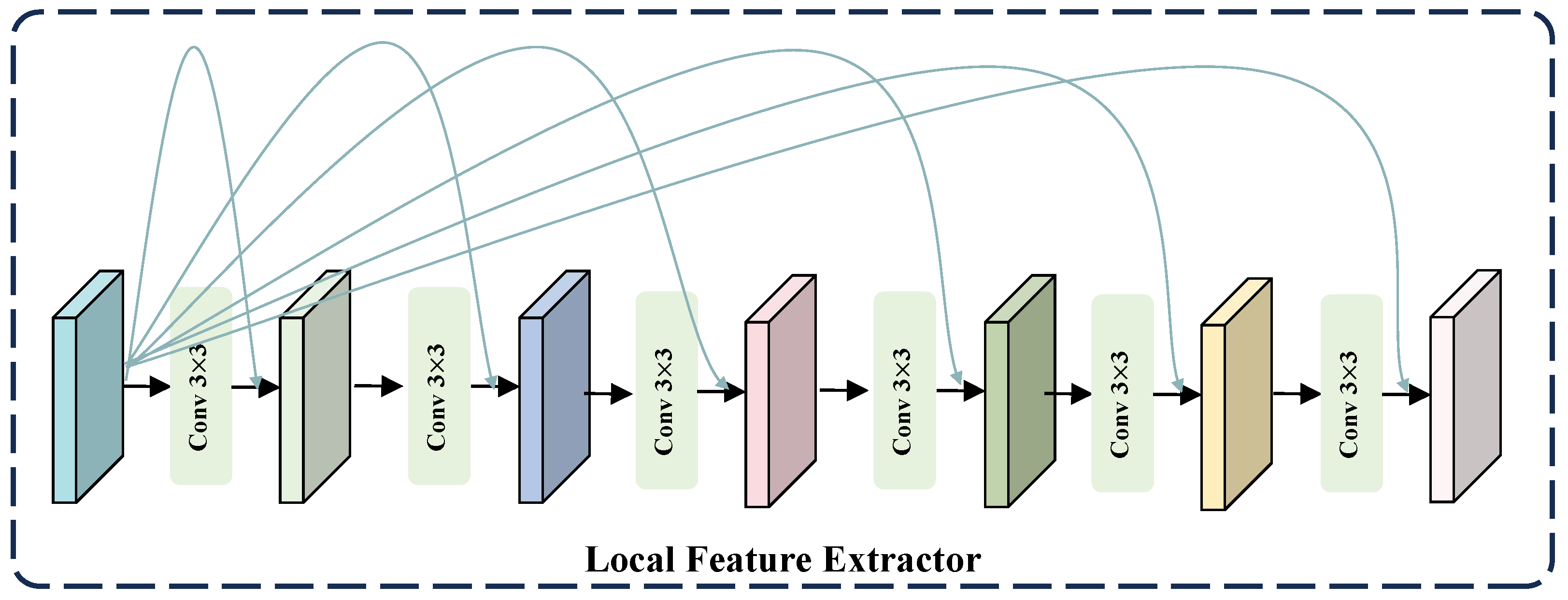 27], we incorporate dense residual connections into the high-frequency information extraction process to fully leverage multi-level features and strengthen high-frequency detail modeling. Overall, we utilize six 3 × 3 convolutions. As depicted in