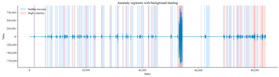 The light blue areas correspond to sudden increase segments identified via studentised z-test combined with BH-FDR correction. The light red areas correspond to high-fluctuation segments identified via variance Bootstrap test. Areas with overlapping colours represent high-risk abnormal segments where both sudden increases in gas concentration and high signal fluctuations occur. These annotations are based on rigorous statistical tests, ensuring the non-random nature of abnormal segments. This provides reliable visualisation support for accurately identifying abnormal gas working conditions, and the causes of abnormal segments can be further explored in combination with on-site actual operation procedures.