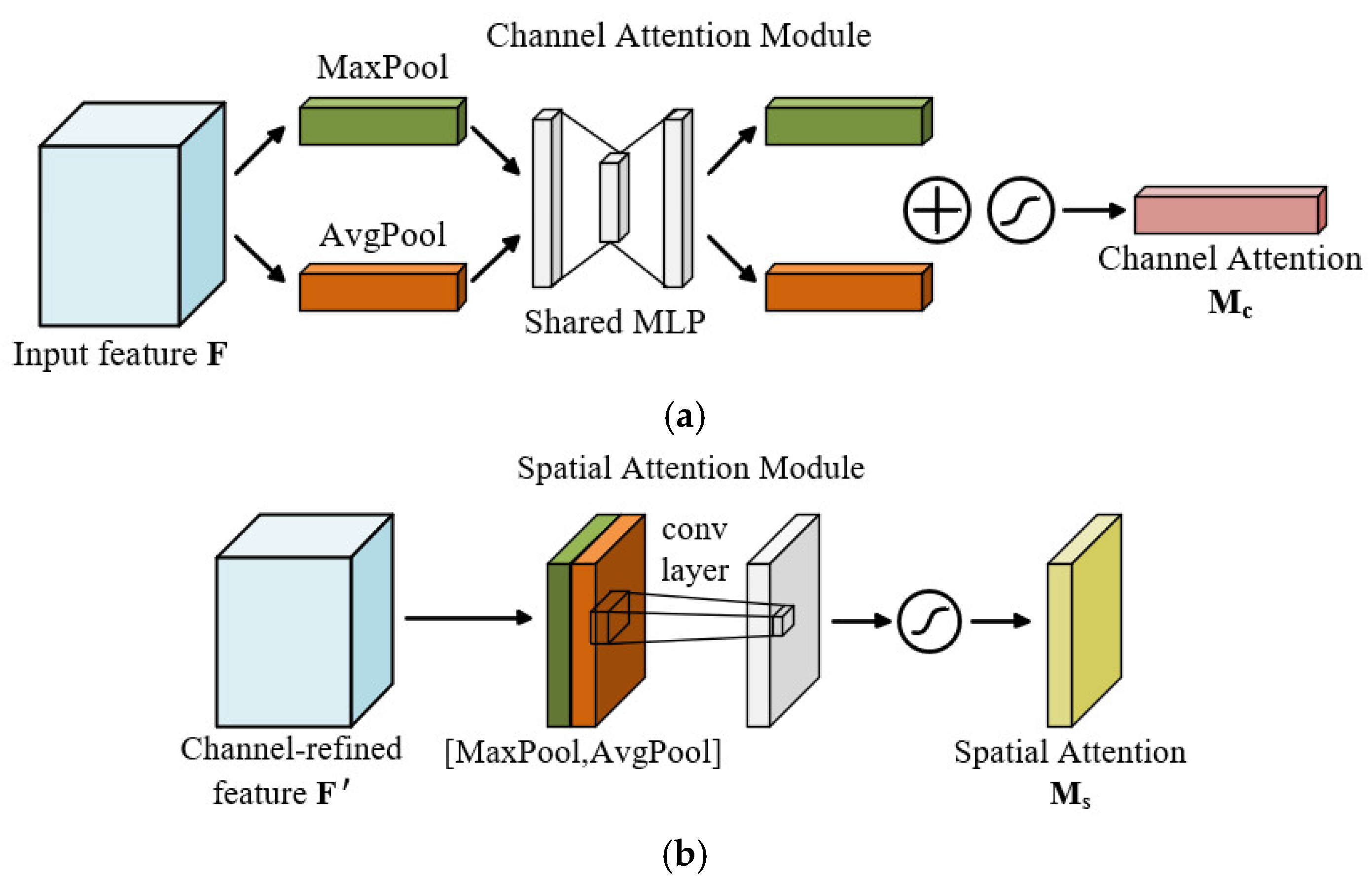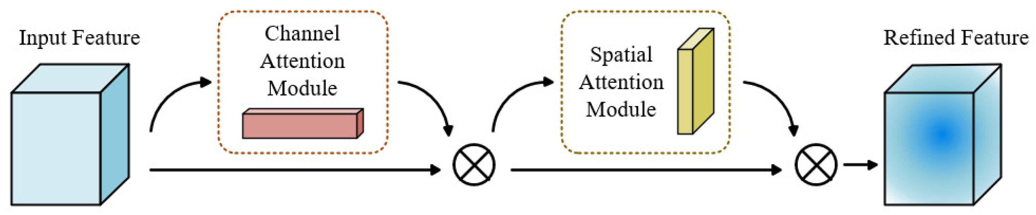 - Woo, S.; Park, J.; Lee, J.Y.; Kweon, I.S. CBAM: Convolutional block attention module. In Lecture Notes in Computer Science; Springer International Publishing: Cham, Switzerland, 2018; pp. 3–19. ISBN 978-3-030-01233-5. [Google Scholar] [CrossRef]