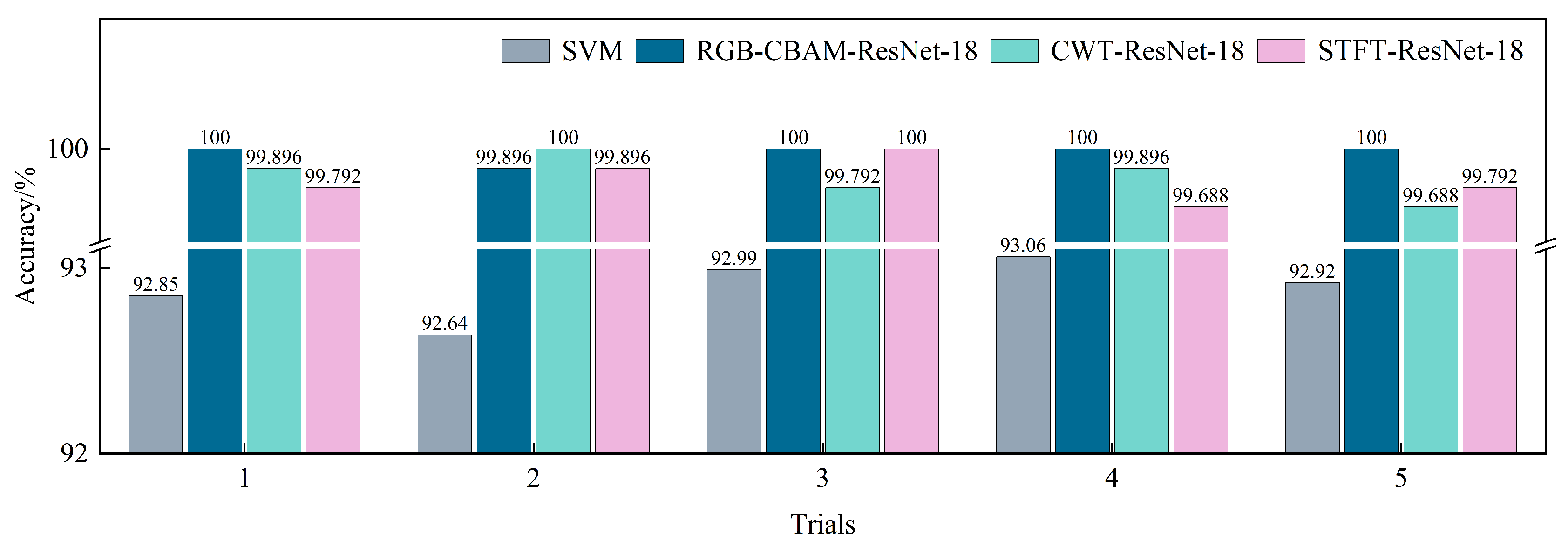 4.3.1. Hydraulic Pump Fault Diagnosis Based on RGB-CBAM-ResNet-18