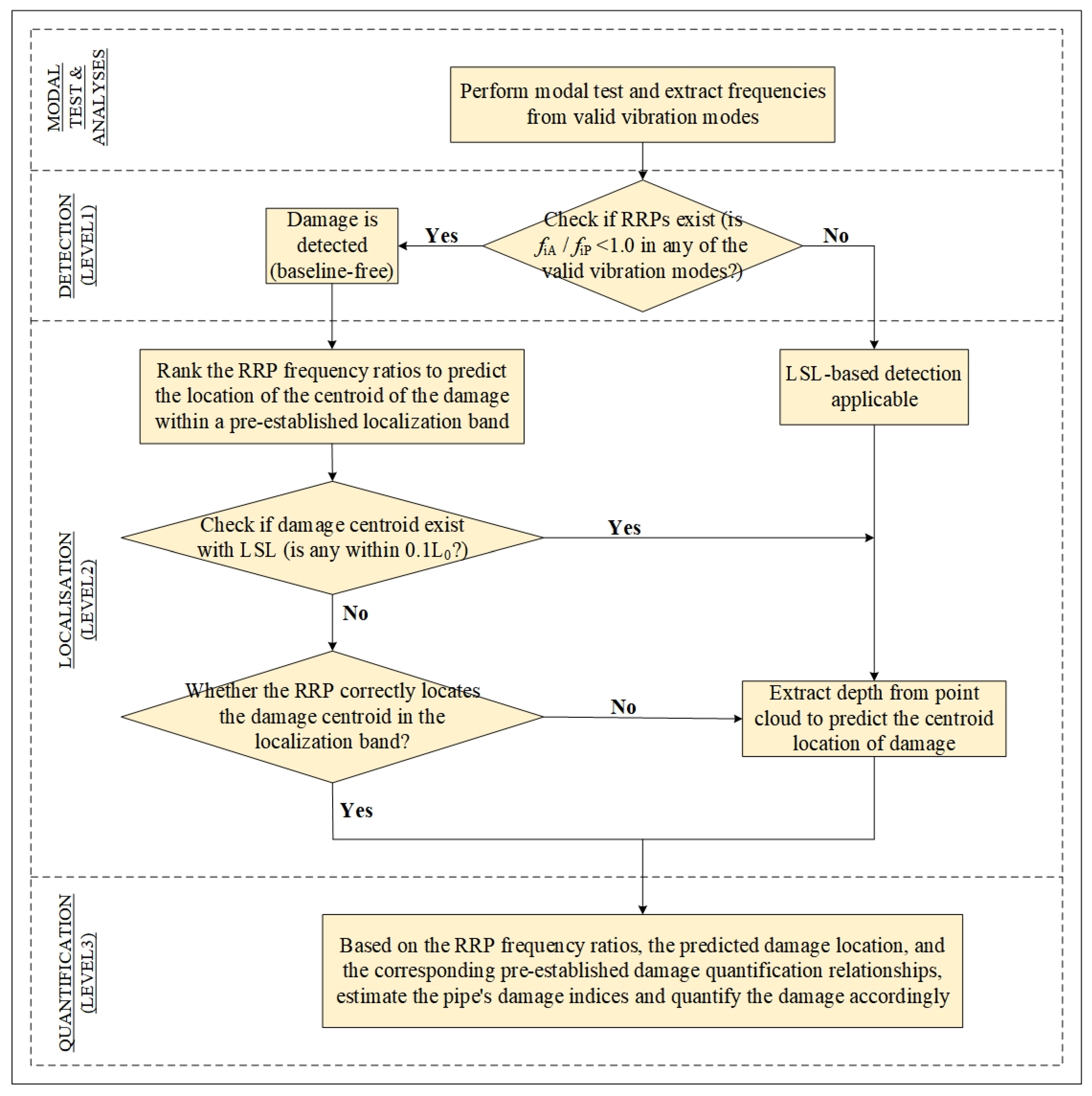 - A novel baseline-free damage-identification method is developed. This method successfully combines RRP with the LSL method to systematically detect, locate, and quantify damage in tubular structures.
