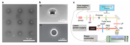 - Gao, Q.; Zang, P.; Li, J.; Zhang, W.; Zhang, Z.; Li, C.; Yao, J.; Li, C.; Yang, Q.; Li, S.; et al. Revealing the Binding Events of Single Proteins on Exosomes Using Nanocavity Antennas beyond Zero-Mode Waveguides. ACS Appl. Mater. Interfaces 2023, 15, 49511–49526. [Google Scholar] [CrossRef]