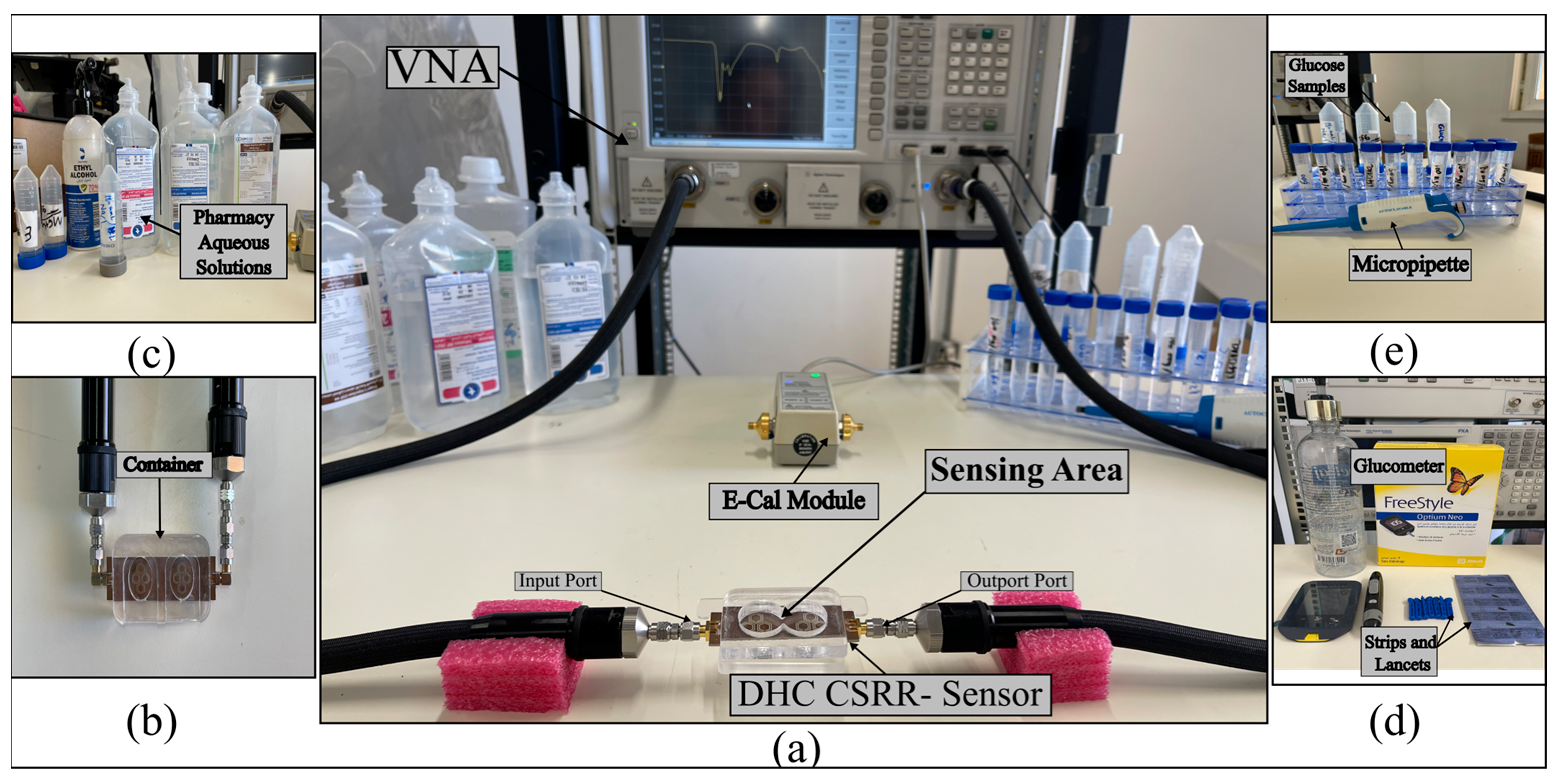 - Lv, Z.; Wang, J.; Li, G. An Antenna Loaded with Complementary Split Ring Resonator for Non-Invasive Blood Glucose Measurement. In Proceedings of the 2024 IEEE International Instrumentation and Measurement Technology Conference (I2MTC), Glasgow, UK, 20–23 May 2024; IEEE: Piscataway, NJ, USA, 2024; pp. 1–6. [Google Scholar] [CrossRef]