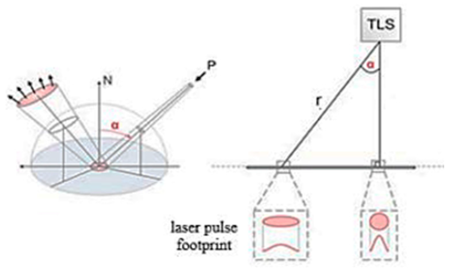 - Soudarissananae, S.; Lindenbergh, R.; Menenti, M.; Teunissen, P. Incidence Angle Influence on the Quality of Terrestrial Laser Scanning Points. In Proceedings of the Laser Scanning 2009, Paris, France, 1–2 September 2009. Bretar, F., Pierrot-Deseillignay, M., Vosselman, G., Eds. [Google Scholar]