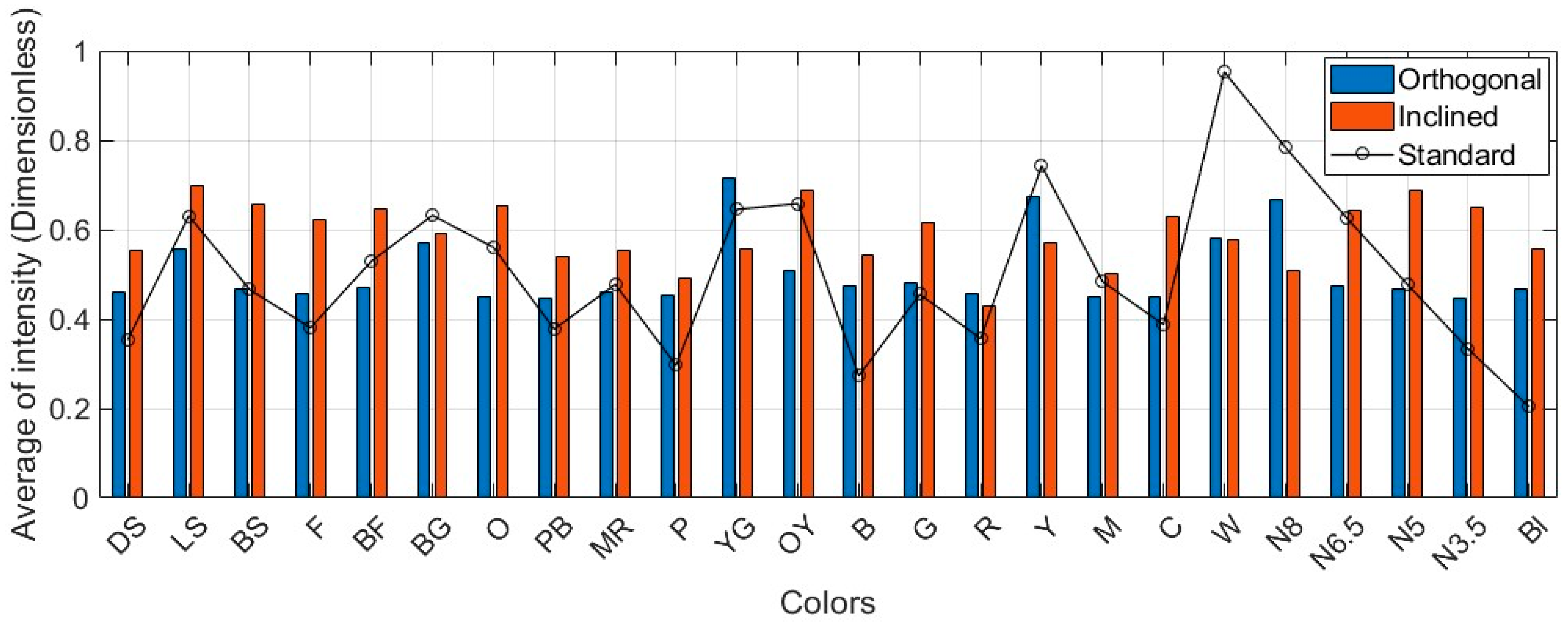 | Purplish blue (PB) | 0.144 | 0.143 | 0.108 | 0.108 | 0.123 | 0.172 | 0.134 | 0.130 |
