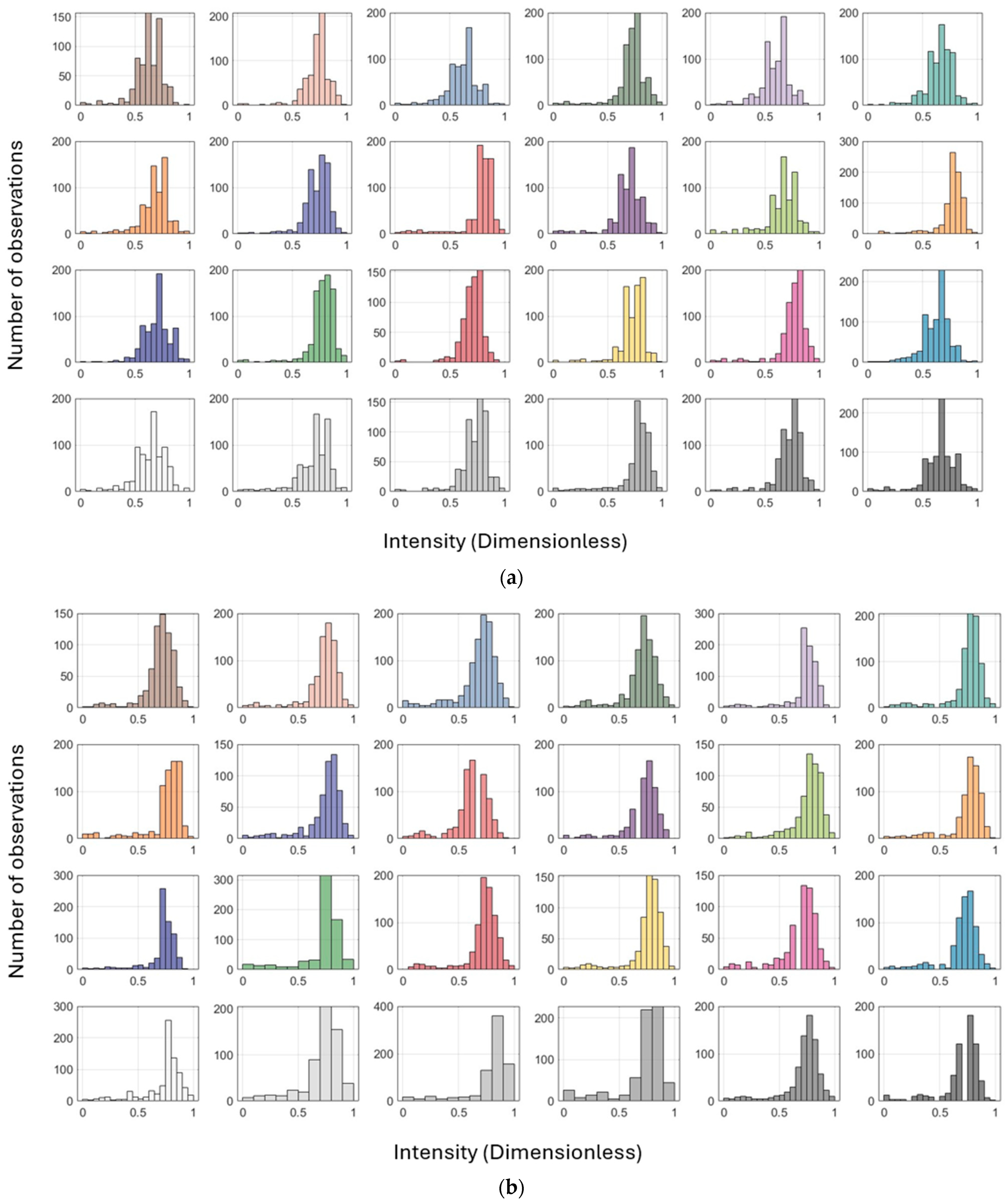 - Pfeifer, N.; Dorininger, P.; Haring, A.; Fan, H. Investigating terrestrial laser scanning intensity data: Quality and functional relations. In Proceedings of the International Conference on Optical 3-D Measurement Techniques VIII, Zurich, Switzerland, 9–12 July 2007; pp. 328–337. Available online: http://hdl.handle.net/20.500.12708/42100 (accessed on 15 September 2025).