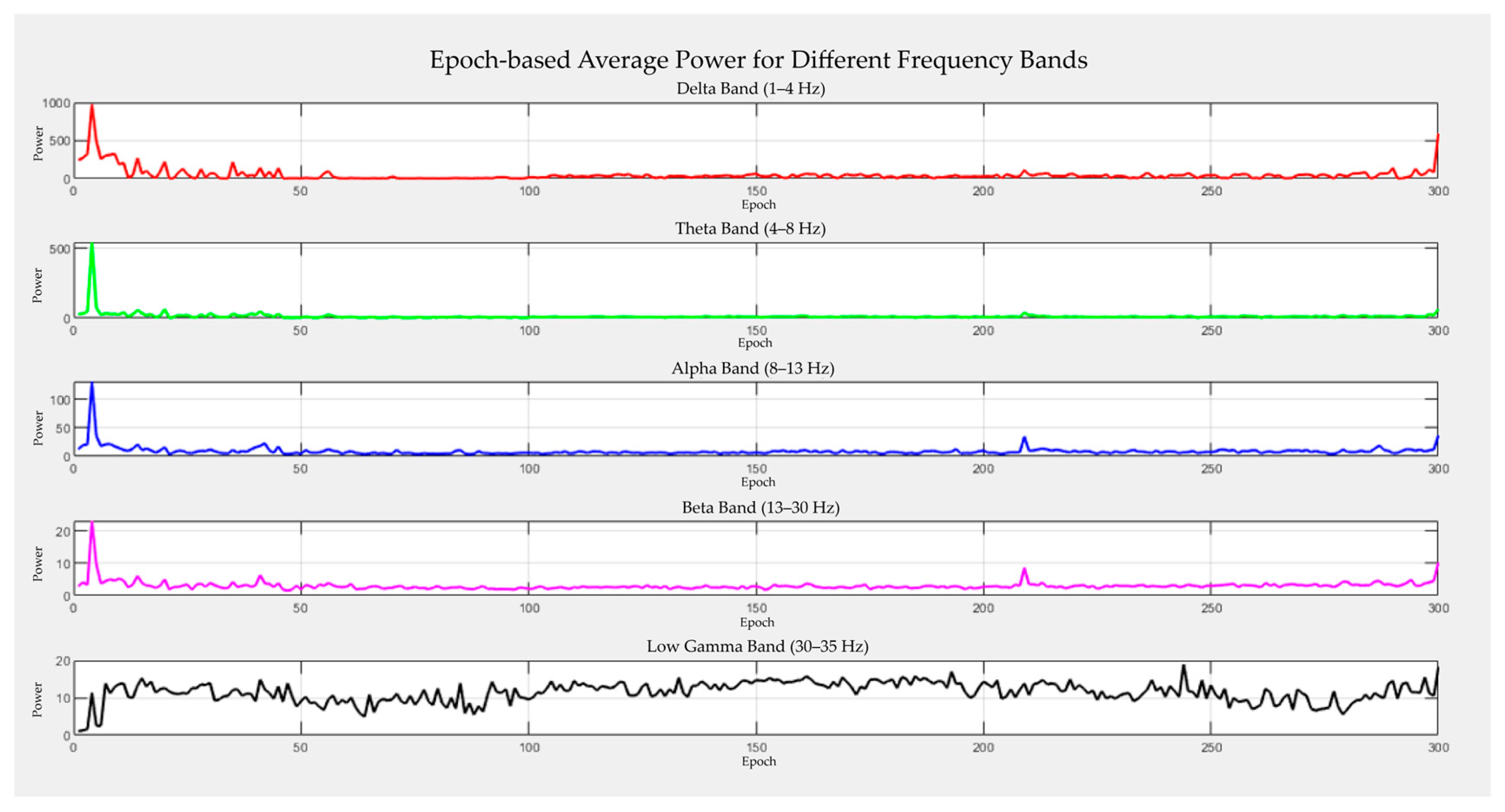 - Gallego-Rudolf, J.; Corsi-Cabrera, M.; Concha, L.; Ricardo-Garcell, J.; Pasaye-Alcaraz, E. Preservation of EEG Spectral Power Features During Simultaneous EEG-fMRI. Front. Neurosci. 2022, 16, 951321. [Google Scholar] [CrossRef]