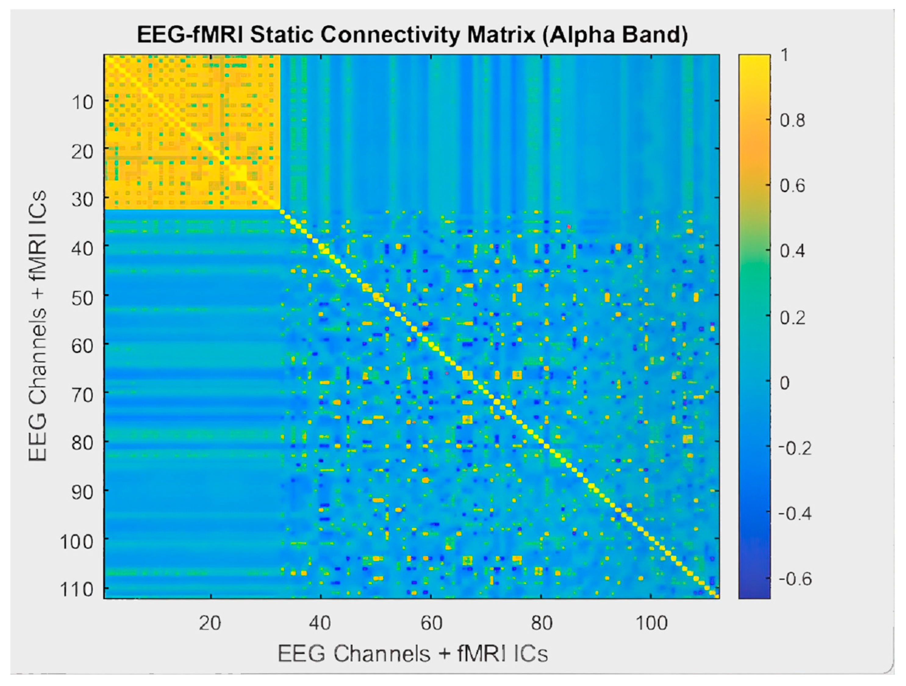 - Phadikar, S.; Pusuluri, K.; Jensen, K.M.; Wu, L.; Iraji, A.; Calhoun, V.D. Coupling Between Time-Varying EEG Spectral Bands and Spatial Dynamic FMRI Networks. In Proceedings of the 2024 IEEE International Symposium on Biomedical Imaging (ISBI), Athens, Greece, 27–30 May 2024; pp. 1–4. [Google Scholar]